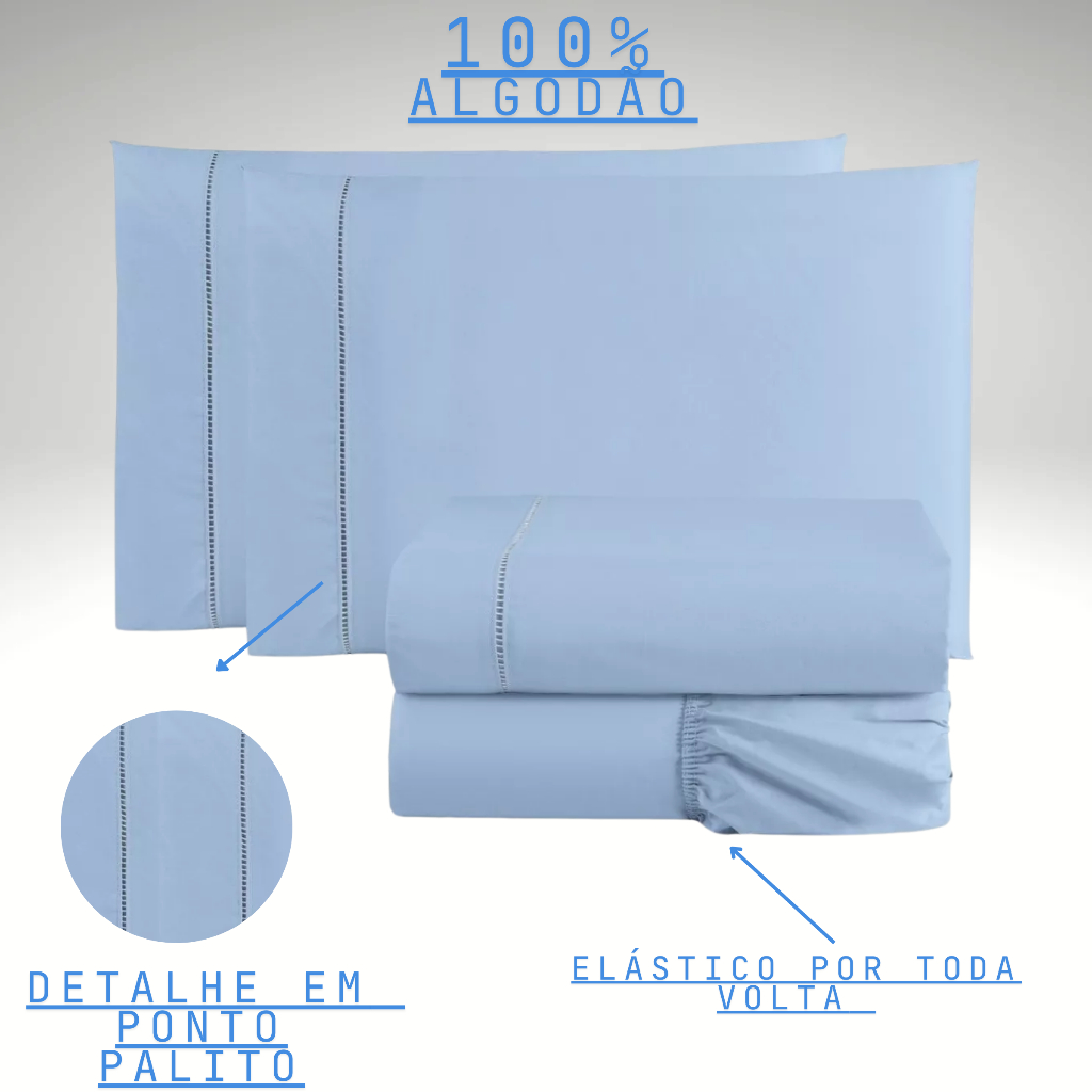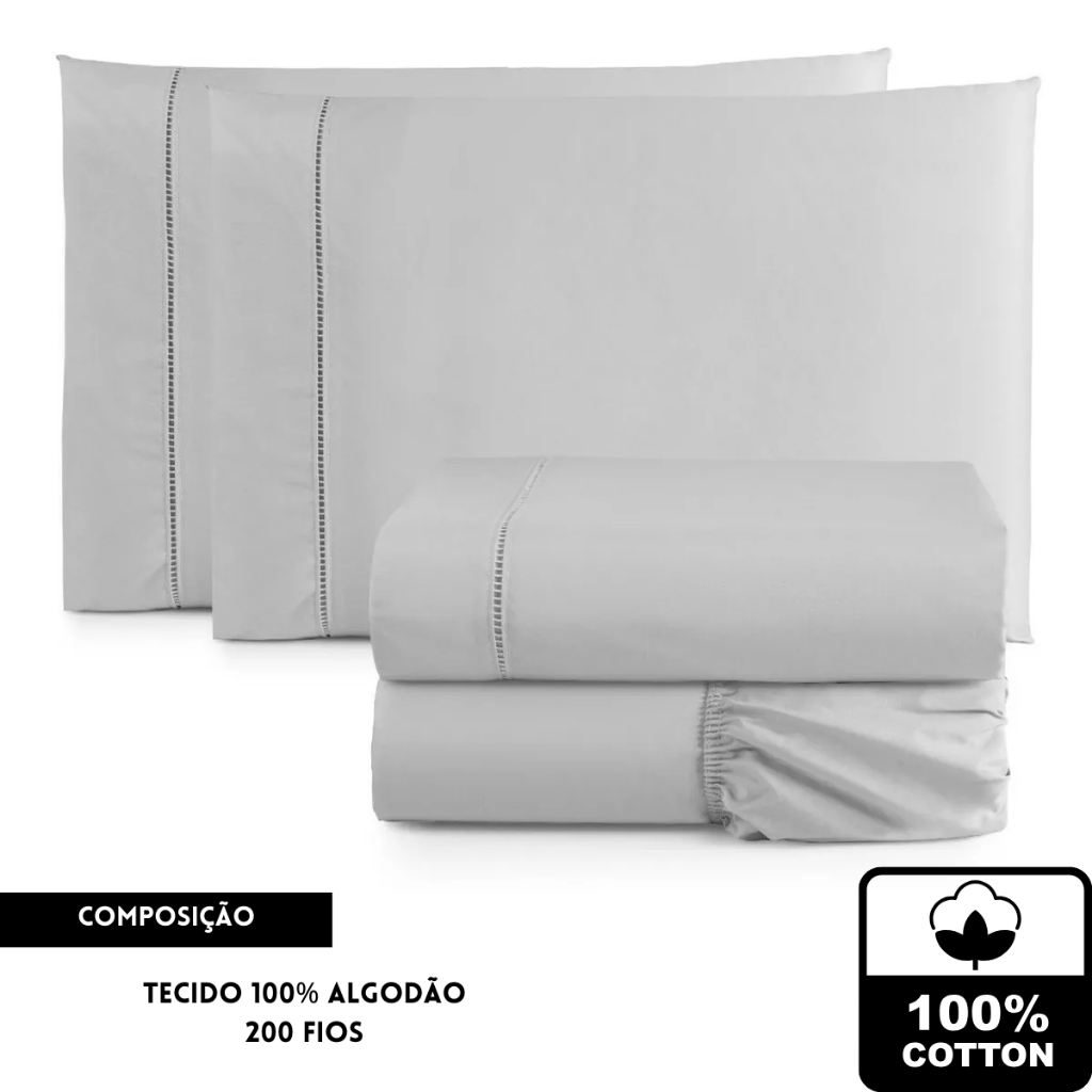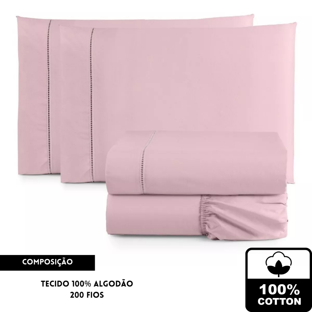 Jogo de lençol casal 3 Peças Padrão 200 fios 100% algodão lisos