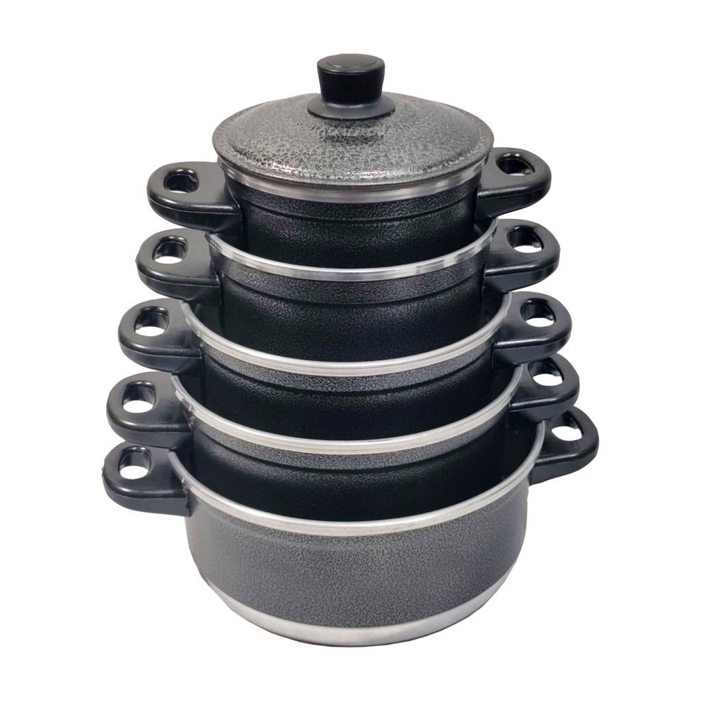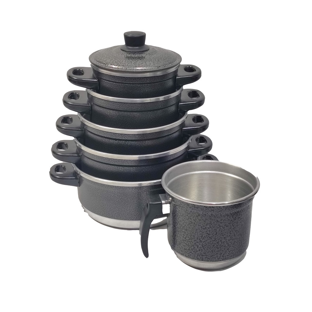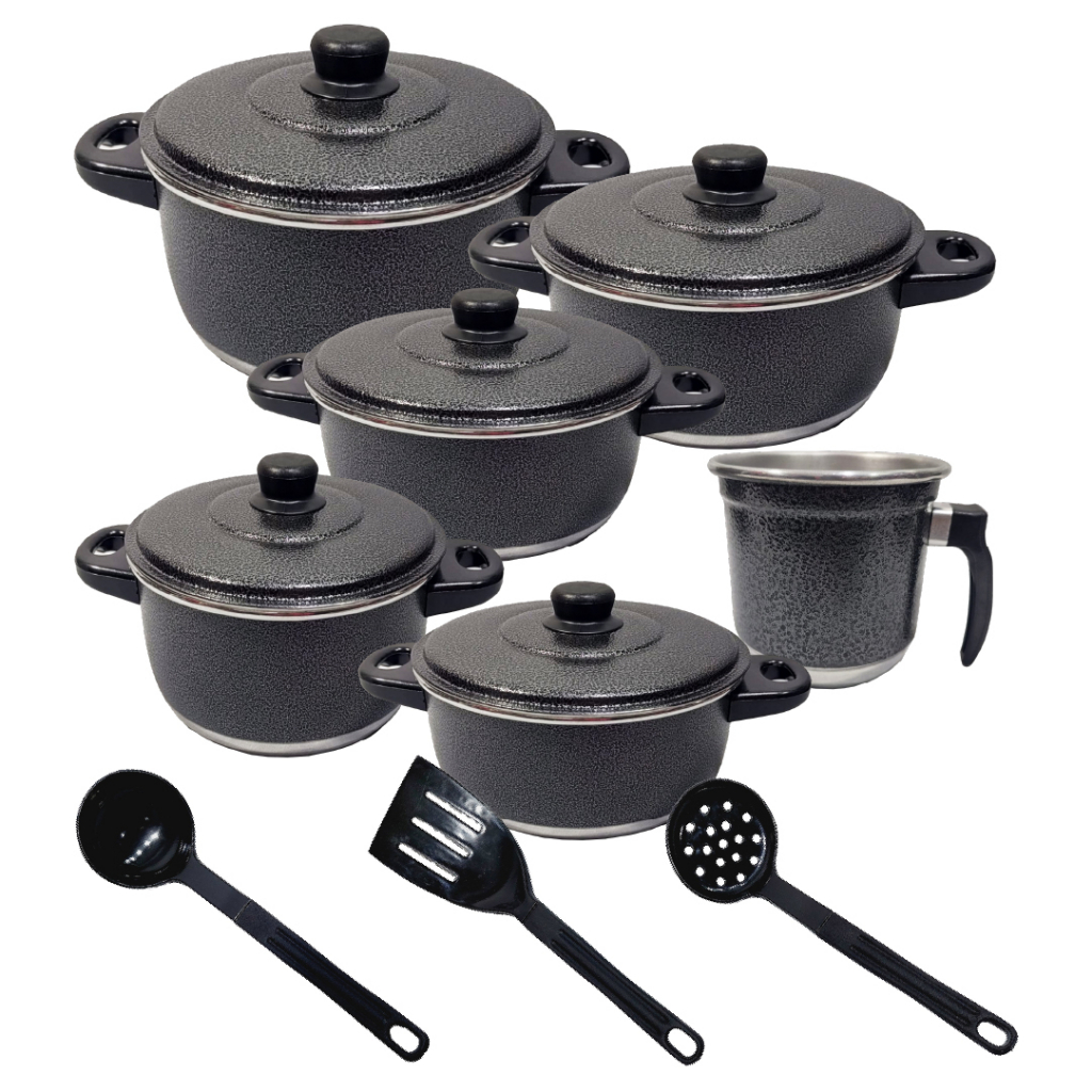 Jogo de panelas 9 peças preta craqueada com utensilios