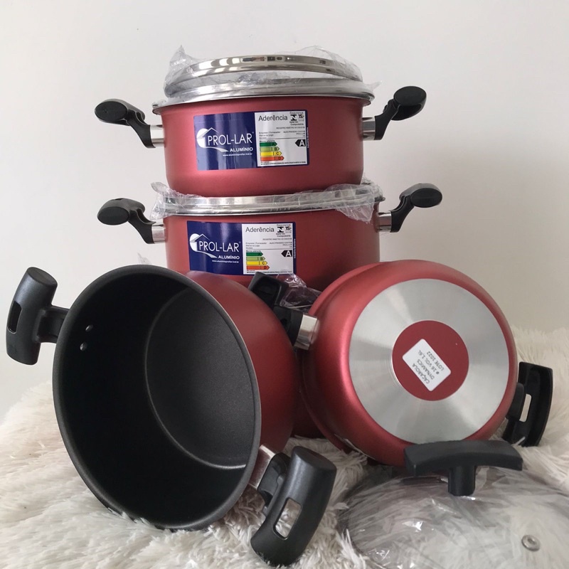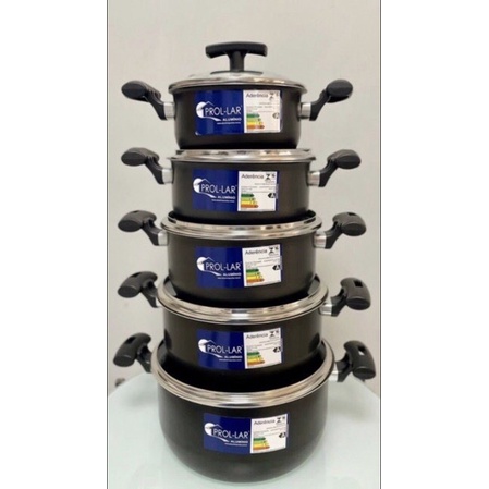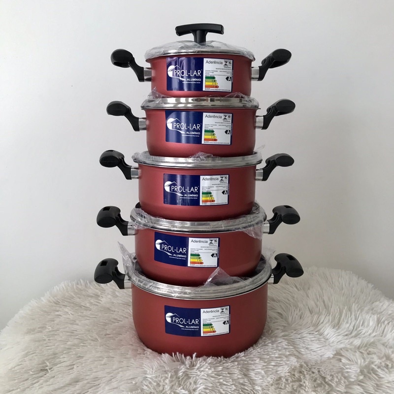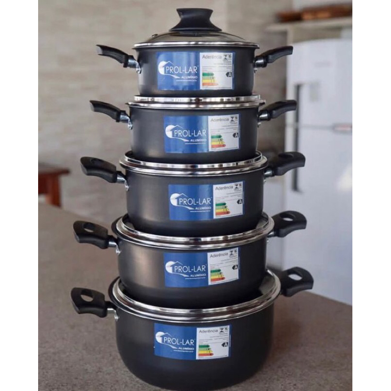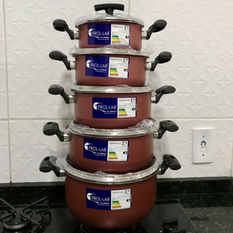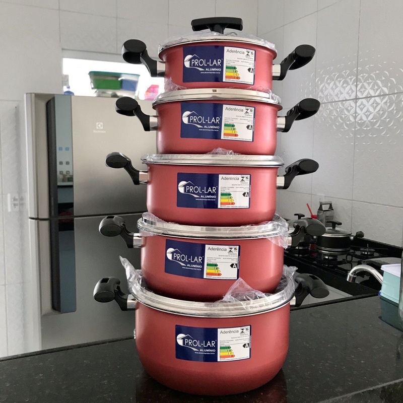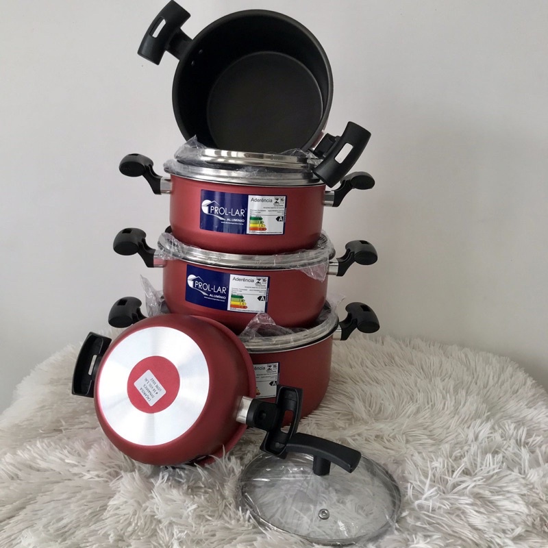 Jogo de panelas Prol lar em Alumínio com revestimento Interno e Externo Antiaderente.