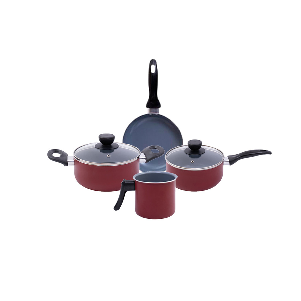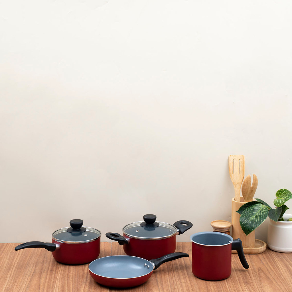 Jogo de panelas antiaderente cerâmica 4 peças vermelha - Oikos