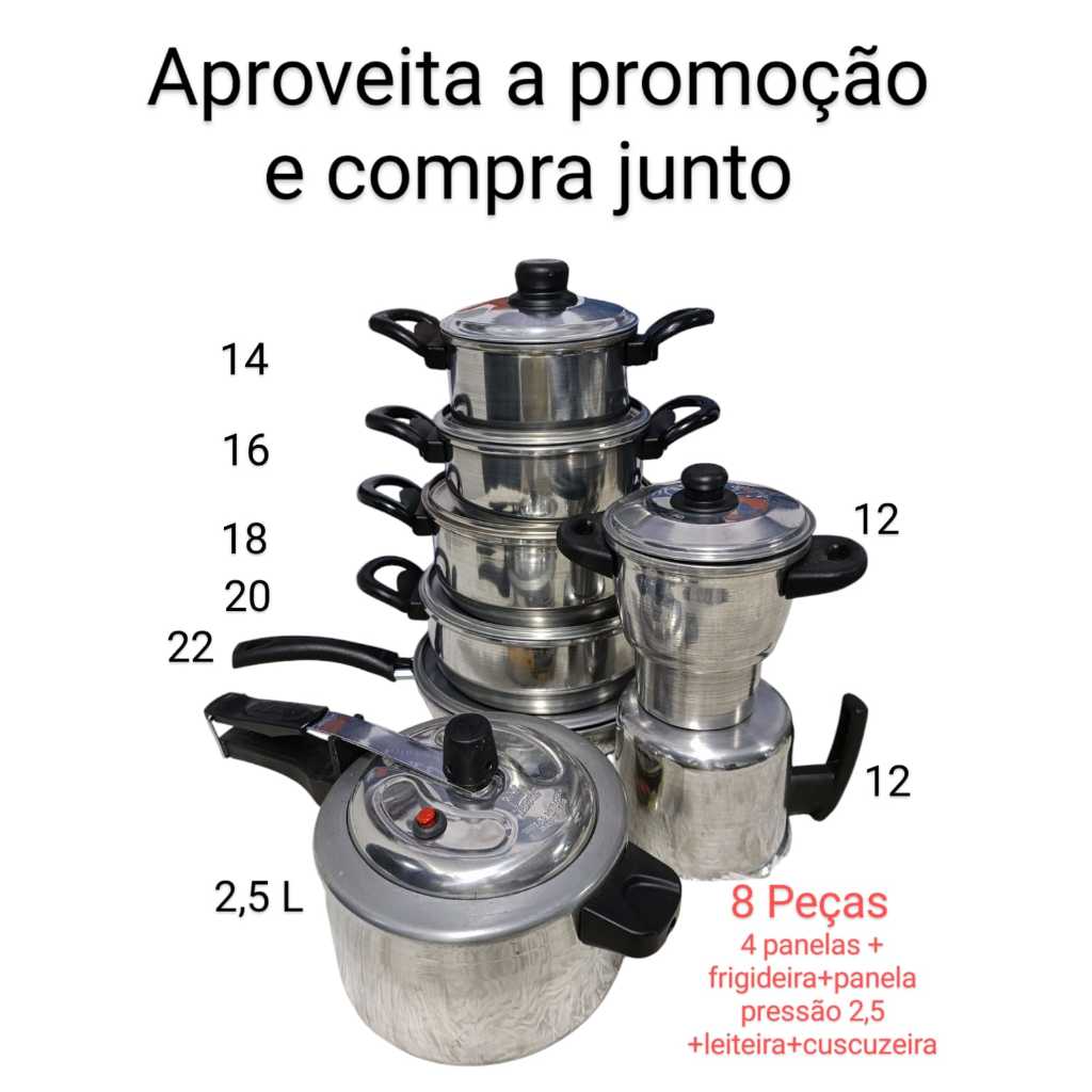 Jogo panelas completo com frigideira grande para sua cozinha, temos kits também com panela pressão