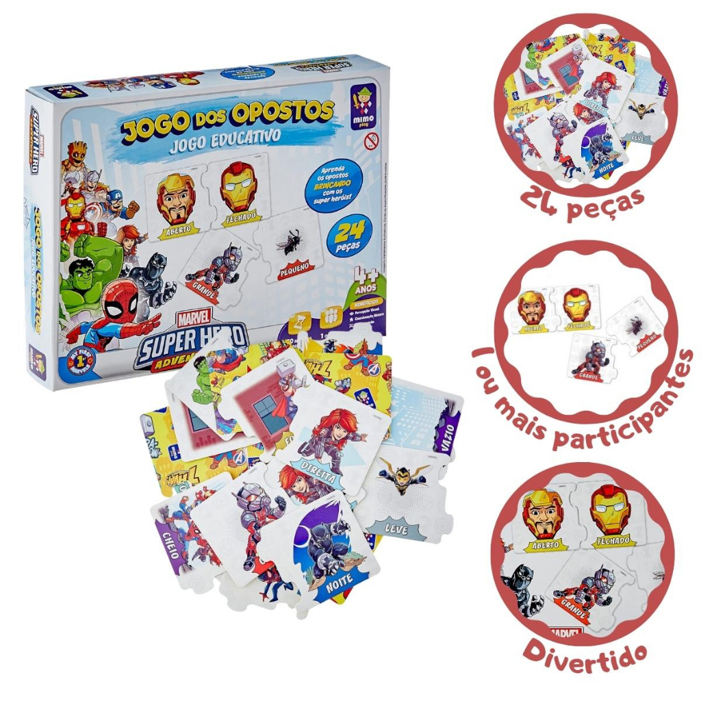 Jogo dos Opostos Educativo Personagens da Marvel