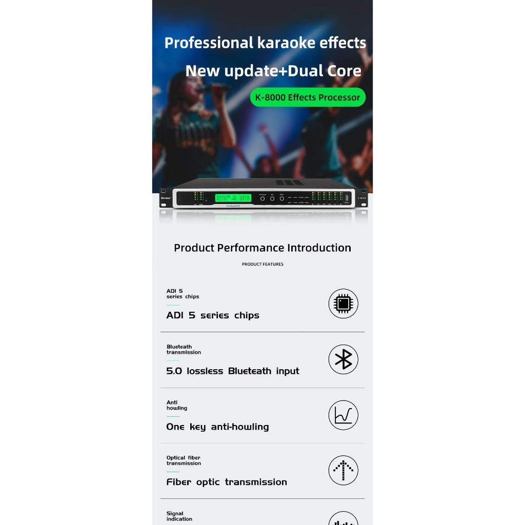 K-8000 Processador de efeito de áudio de karaokê digital profissional construído em 5.0 BT VOD porta infravermelha
