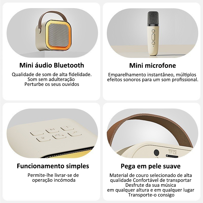 K12 Caixa de Som Karaokê Bluetooth – com Microfone Divertimento Familiar