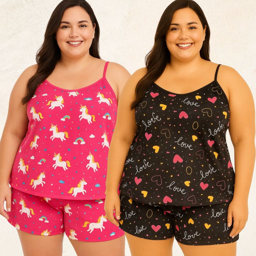 KIT 02 BABY DOLL PLUS SIZE 1XL VESTE 48/50 ( ESTAMPAS SORTIDAS )