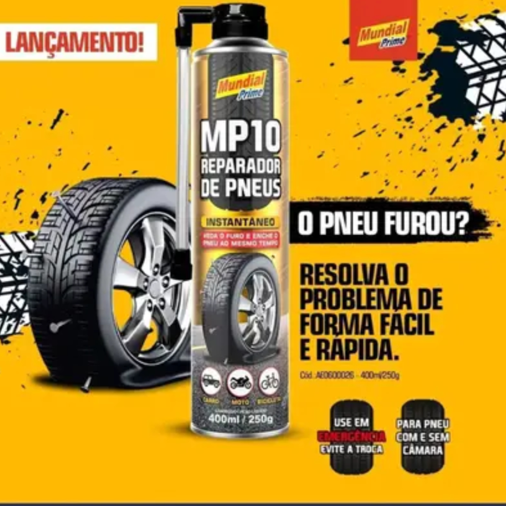 KIT 02 Reparador de Pneus MP10 Veda Furos 400ml Mundial Prime