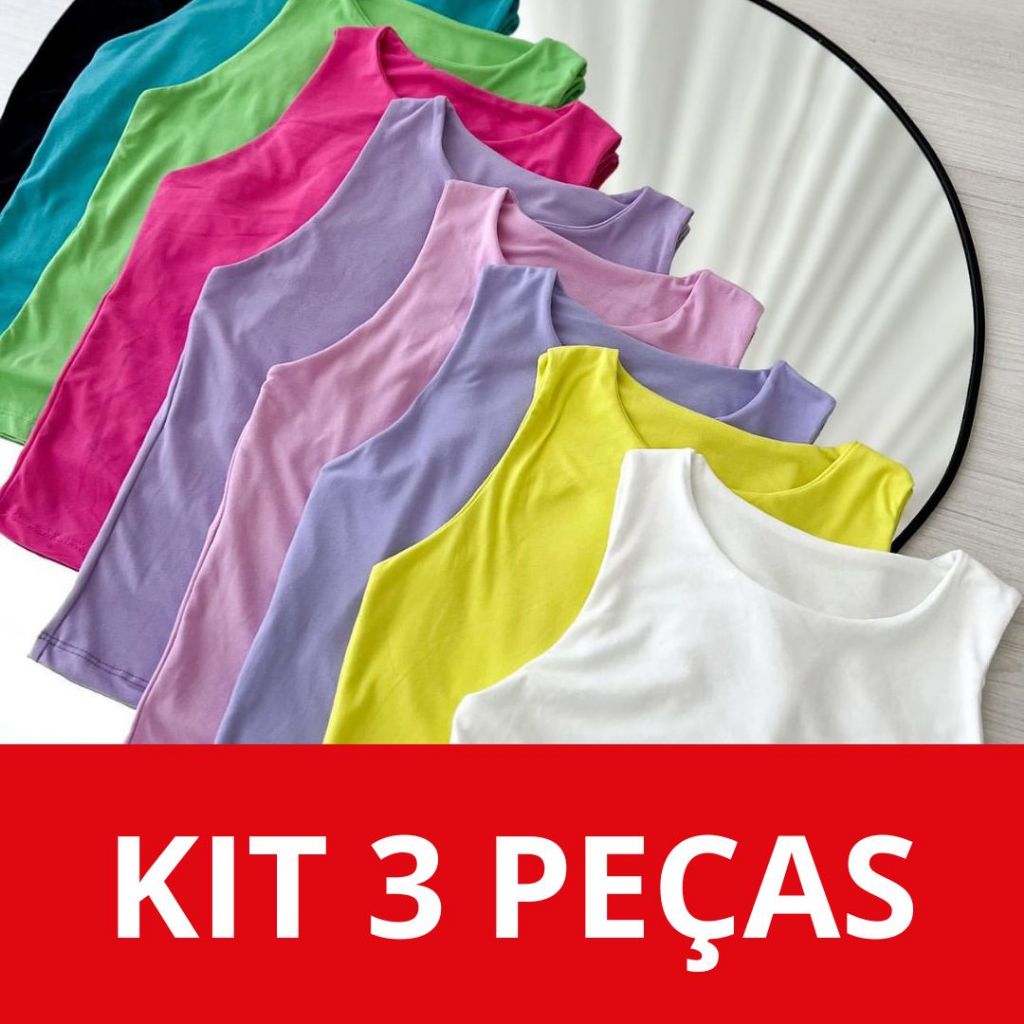 KIT 03 Blusas Femininas Regata Básica Com Forro