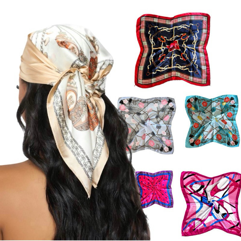 KIT 1/2/3 Peças Lenço de Cabelo Feminino Estampado Tecido Cetim Tamanho 50x50 - WL