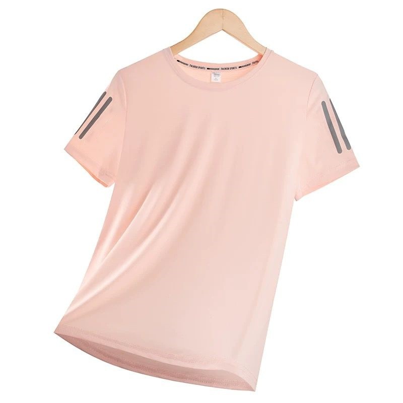 KIT 1 - 3 Camiseta Básica de Manga Curta para Exercícios de Verão Feminina Listras Refletivas Frescas, Seda Gelada