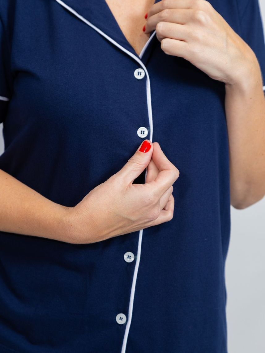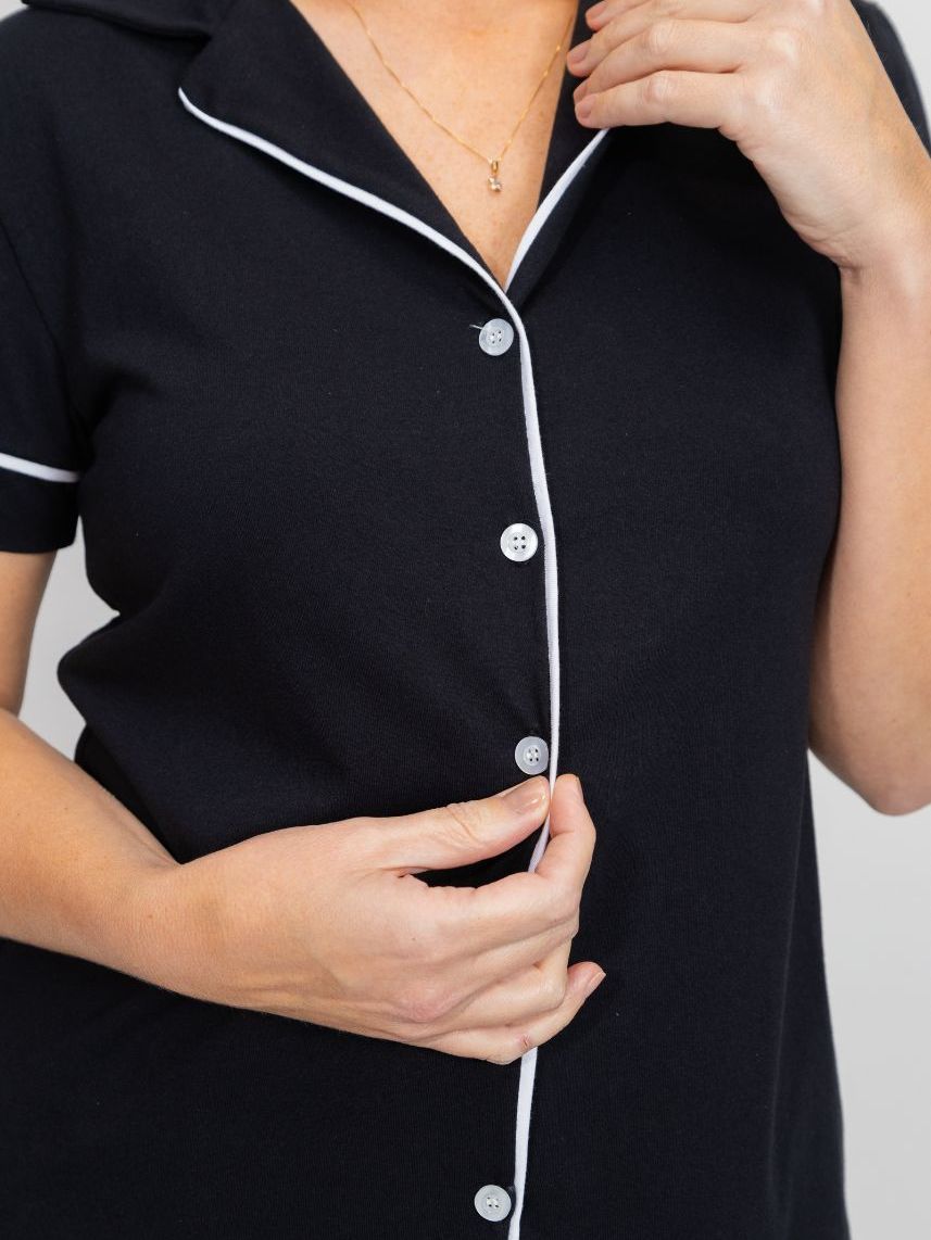 KIT 1 Pijama Americano Curto Preto + 1 Pijama Americano Curto Marinho