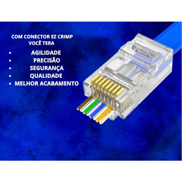 Conector RJ45 Vazado 20/30/50/100 unidades EZ Crimp 8 Pinos Cat5 cat6 Para rede internet