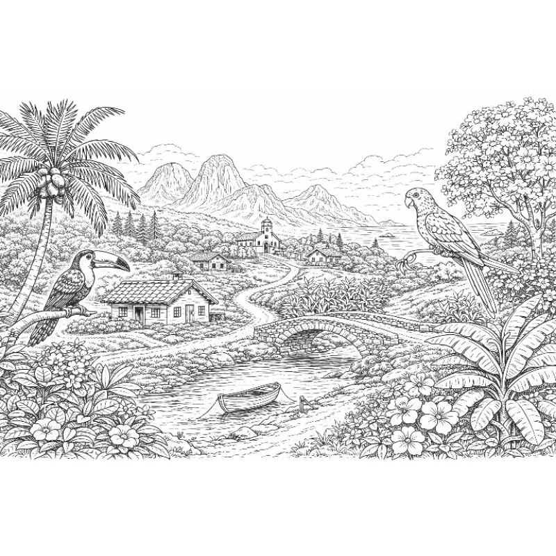KIT 100 DESENHOS PARA COLORIR PINTAR 100 FOLHAS SEPARADAS A4 TEMA PAISAGEM EDIÇÃO 2
