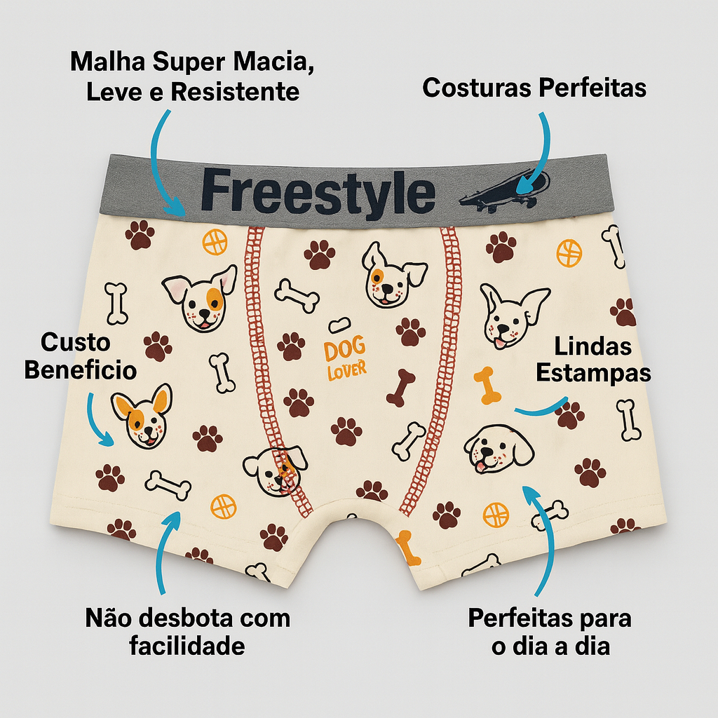 KIT 2, 4 ou 6 Cuecas Infantis Boxer 100% Algodão Toque Macio, Conforto e Estampas Divertidas