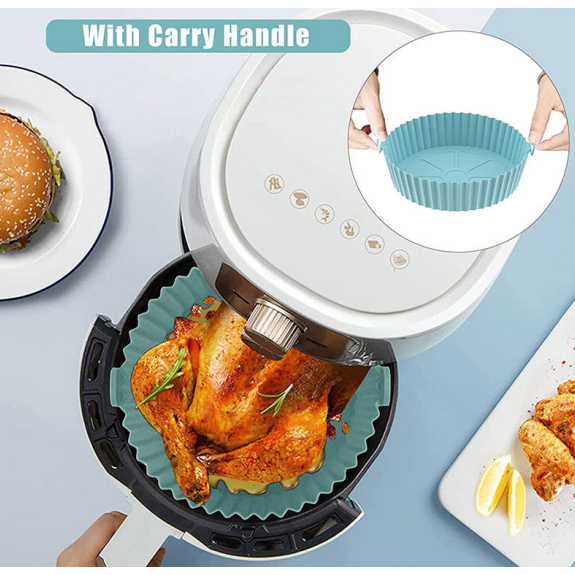 KIT 2 Bandeja Forma De Silicone Redondo Para Air Fryer Forno Microondas Fritadeira Assadeira Reutilizável Antiaderente Flexível