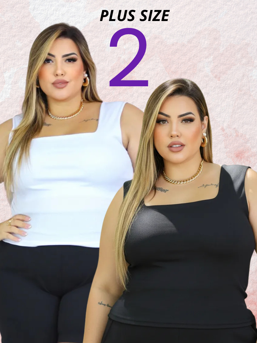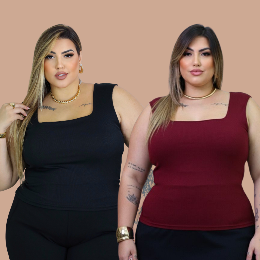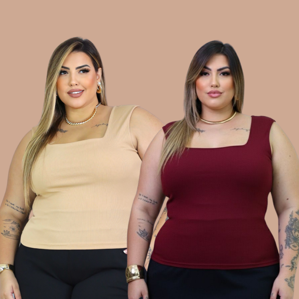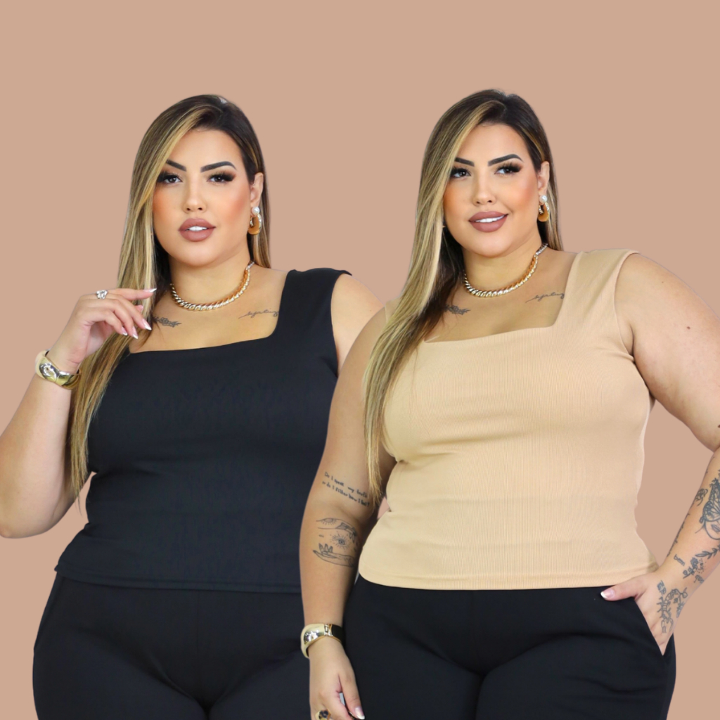 KIT 2 Blusa Regata Plus Size Social Chique com Gola Quadrada Verão Moda Feminina Plus Size Elegante