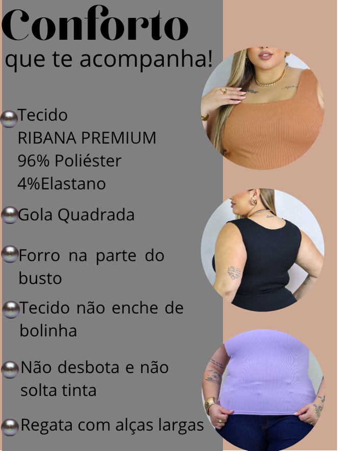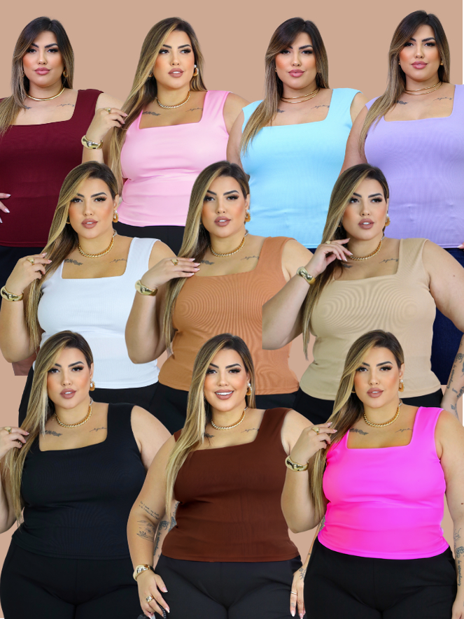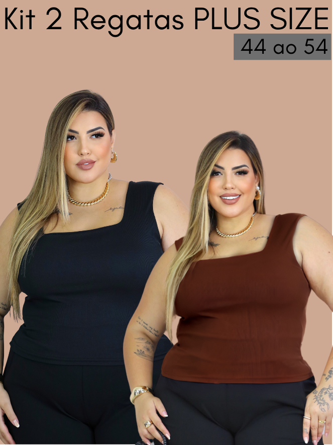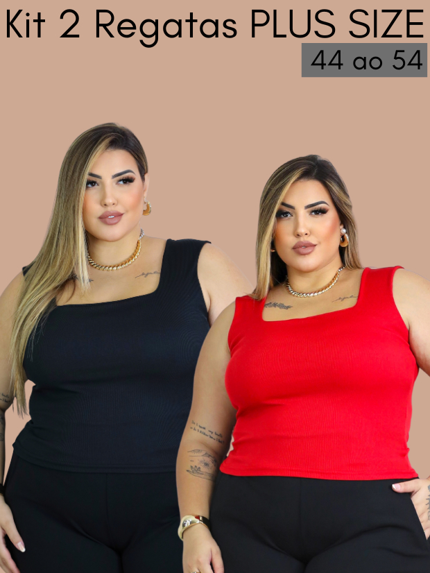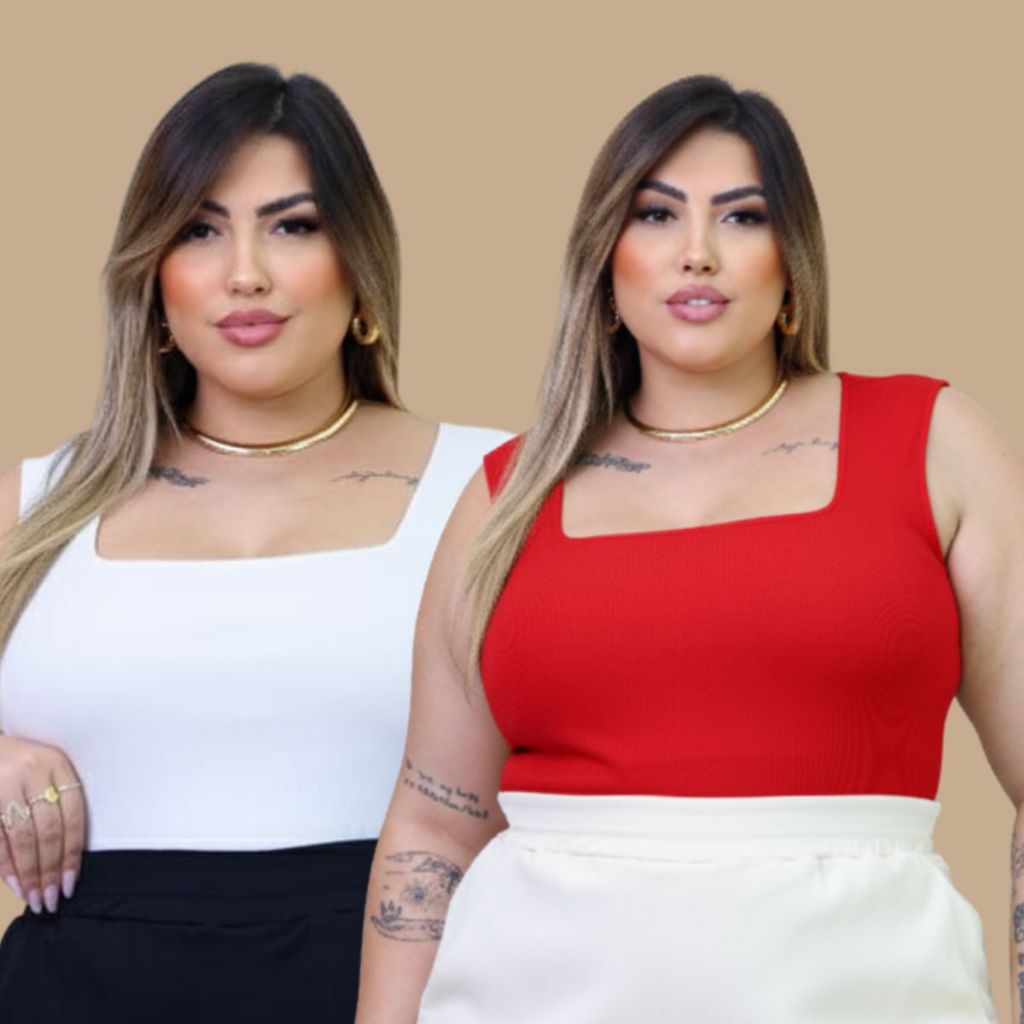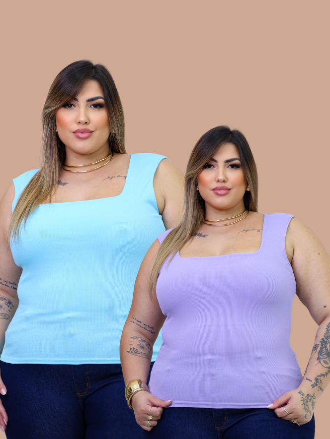 KIT 2 Blusa Regata Plus Size Social Chique com Gola Quadrada Verão Moda Feminina Plus Size Elegante