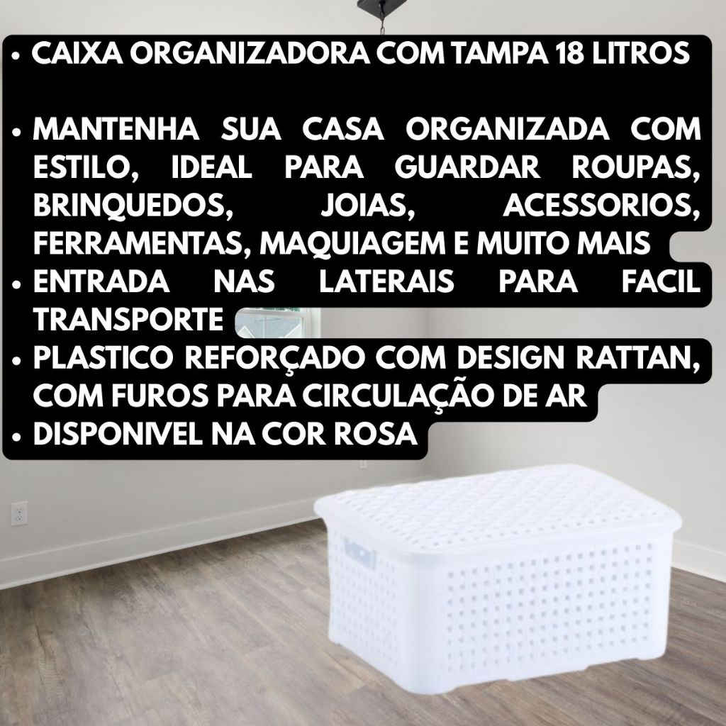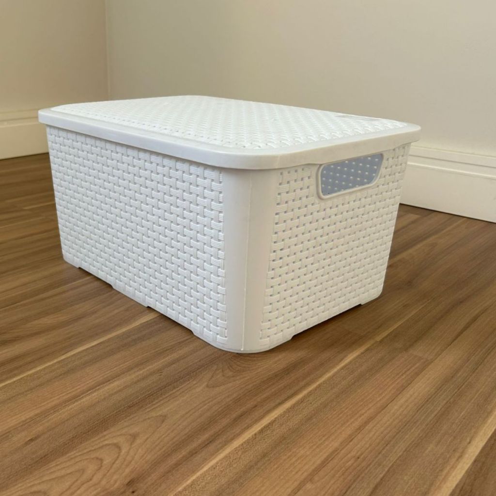 KIT 2 Cestos Organizadores Empilhavel Branco 18 Litros Com Tampa Reforçada