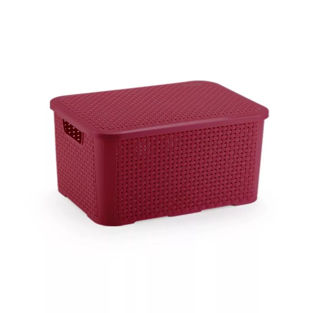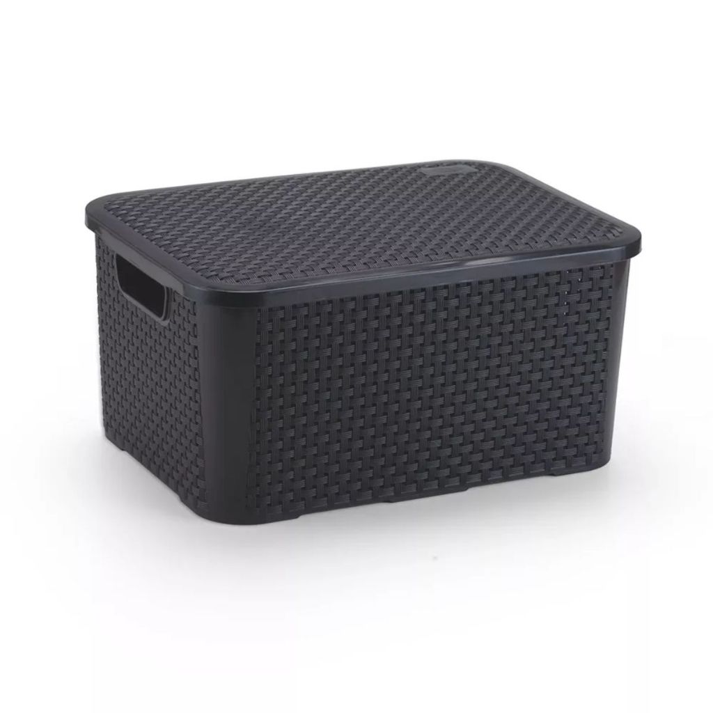 KIT 2 Cestos Organizadores Rattan Plastico com Tampa Reforçada 18 Litros