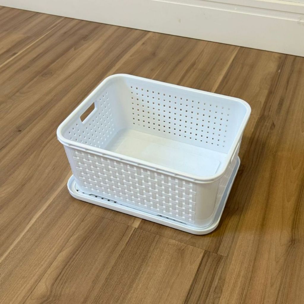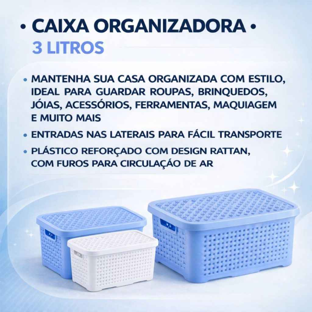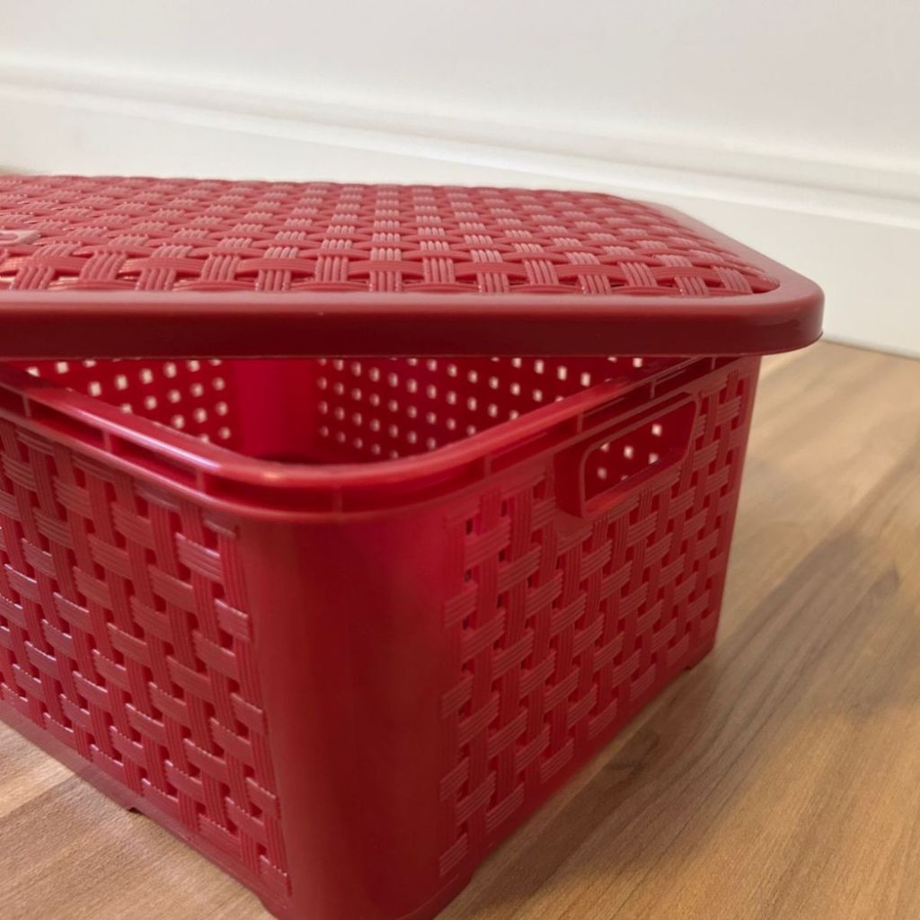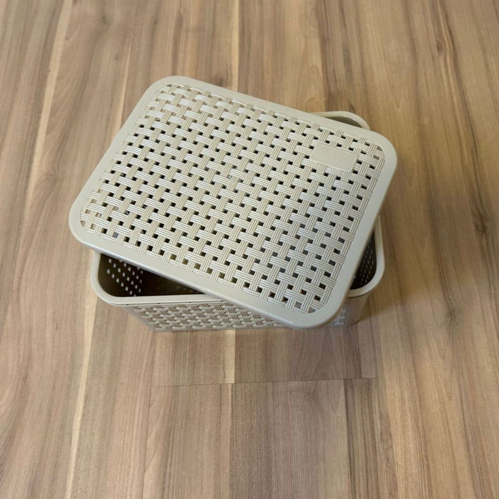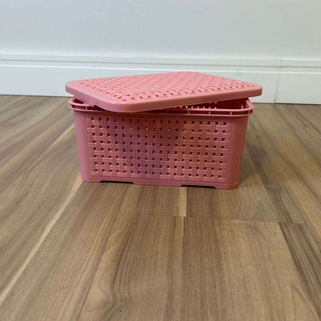 KIT 2 Cestos Organizadores Rattan c/ Tampa Resistente 3 Litros