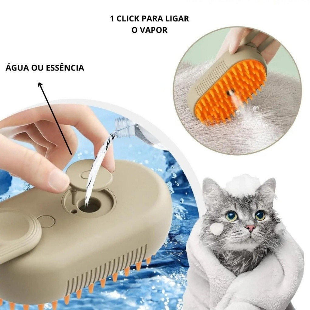 KIT 2 Escova A Vapor Para Gatos Cães 3 Em 1 Escovas Elétricas De Pêlos Pentes De Massagem