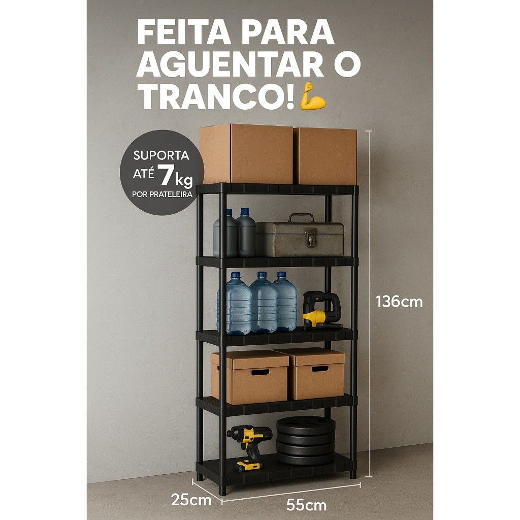 KIT 2 Estantes com até 7 Prateleiras Organizadora de Plástico Modular Multiuso para Cozinha e Quarto