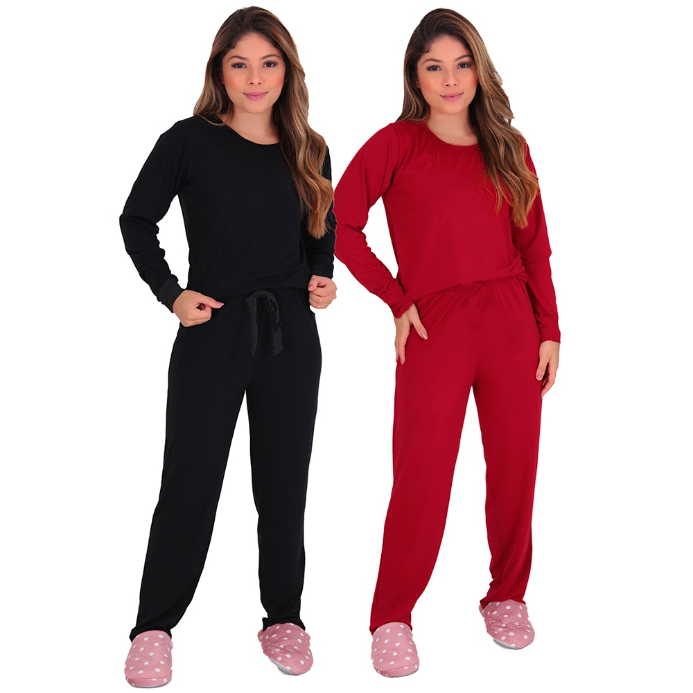 KIT 2 Pijamas Suede Manga Longa Felpado Outono Inverno