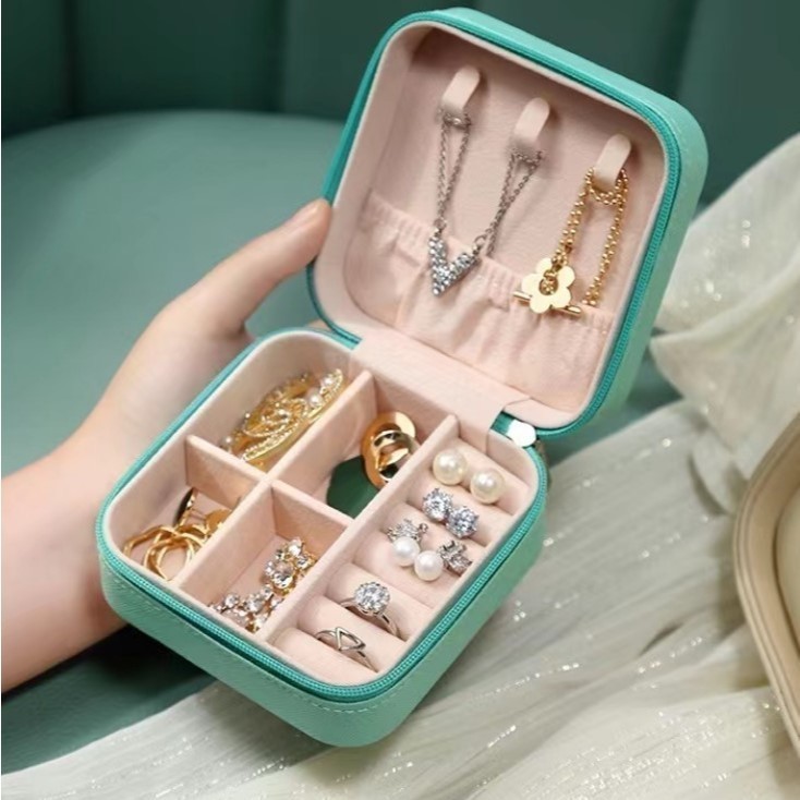 KIT 2 Porta Joia De Bolsa Para Viagem Portátil/caixa de armazenamento/bolsa/anel/colar COR BABY ROSA