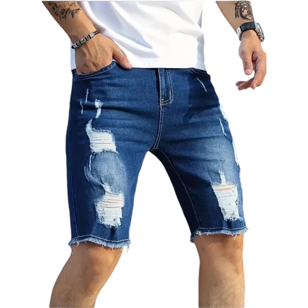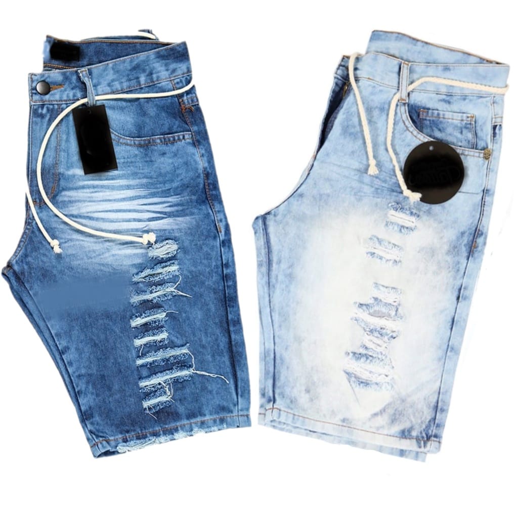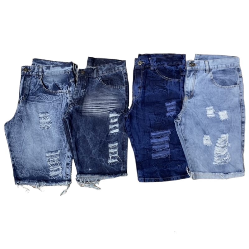 KIT 3 Bermudas jeans Moda masculina jeans De Ótima Qualidade Modelo Rasgada Premium