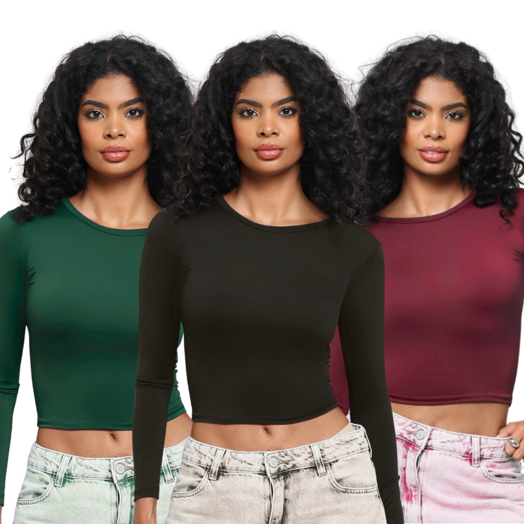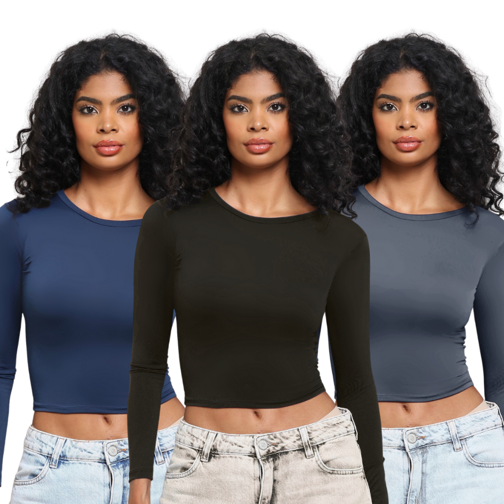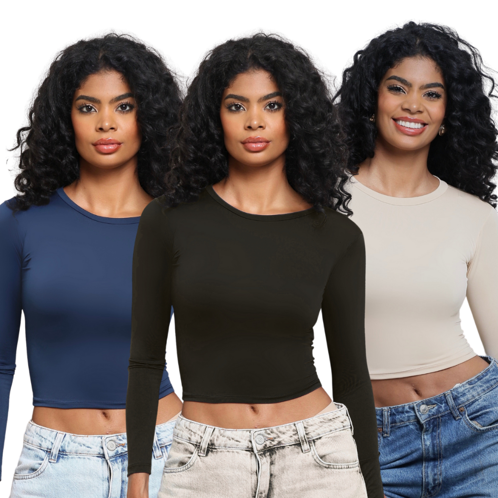 KIT 3: Blusa Feminina de Manga Longa - Meia Estação de Compressão Colada