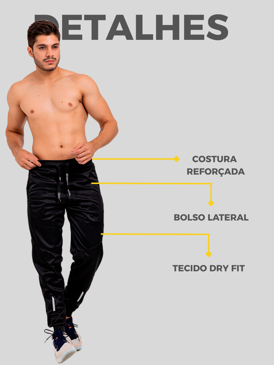 KIT 3 Calça Jogger Masculina Esportiva DRYFITNESS C/ Zíper Refletivo - Academia e Casual