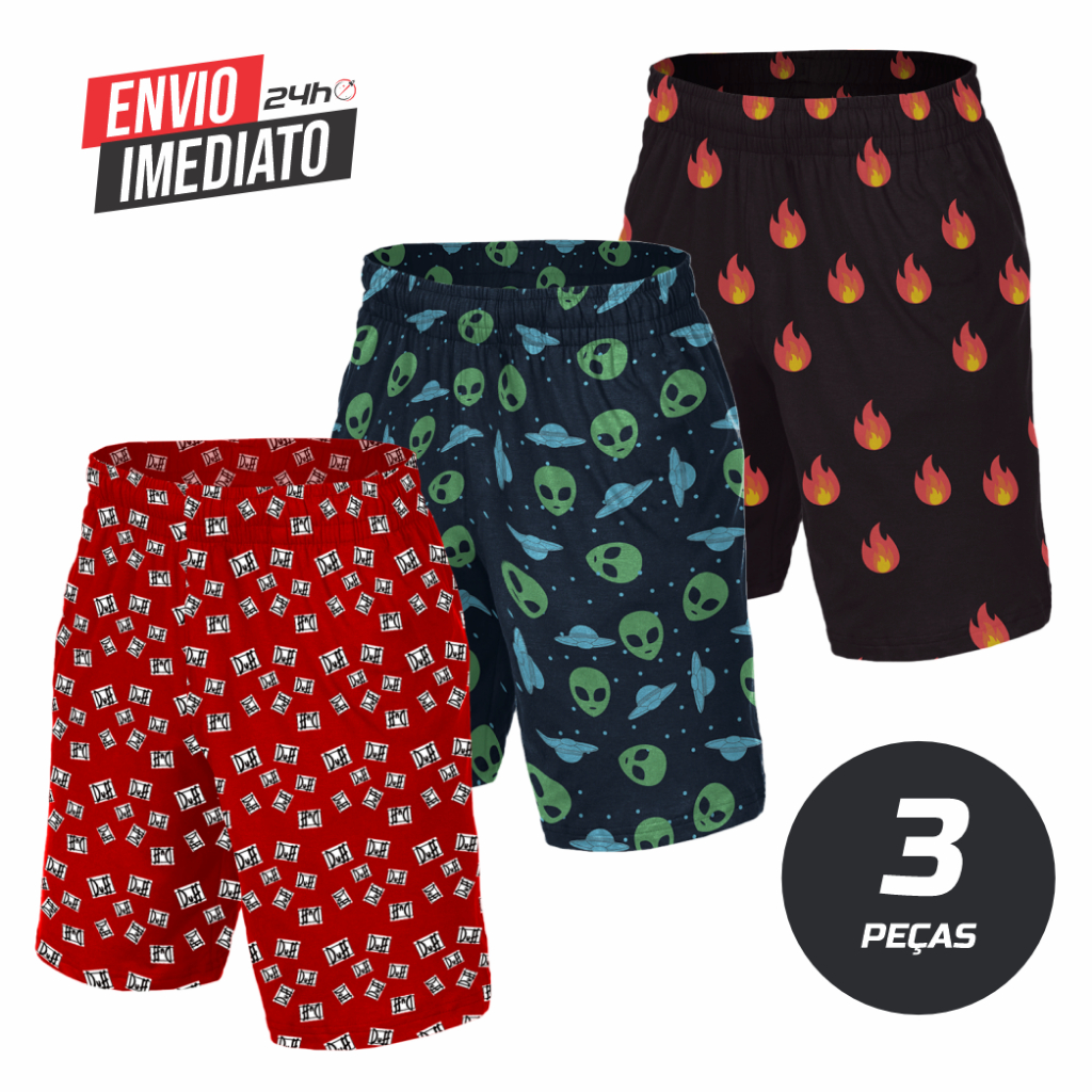 KIT 3 Cuecas Shorts Samba Cançao Pijama Estampado Masculino Microfibra