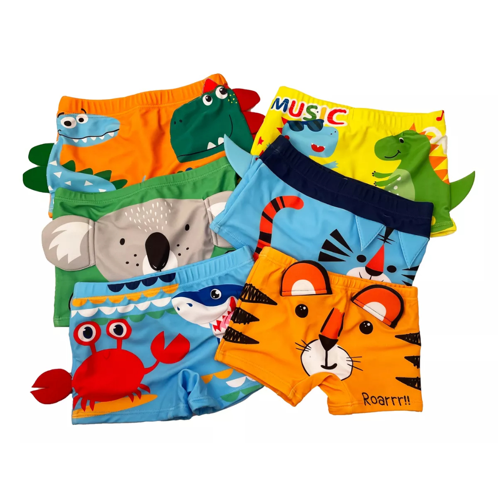 KIT 3 Sunga Boxer Bebê Infantil Juvenil Proteção Solar Uv Estampa Sortida Verão Piscina Natação