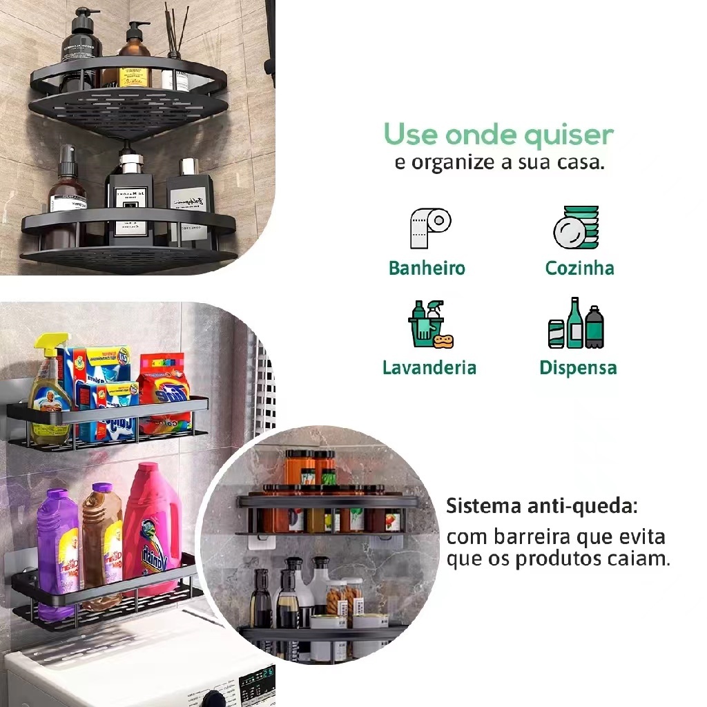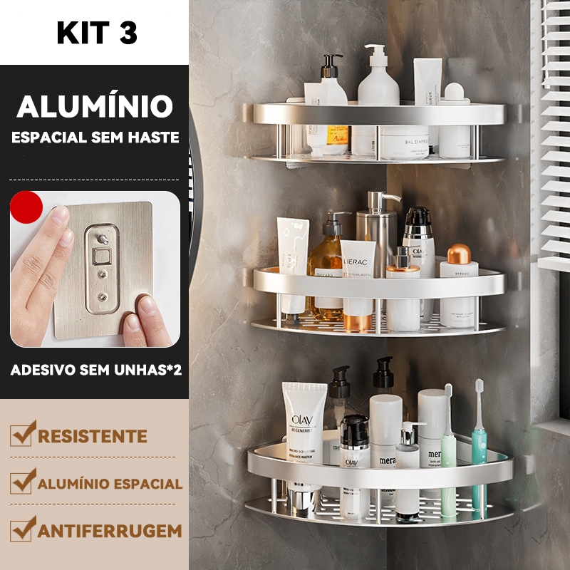 KIT 3 Suporte Prateleira De Canto Para Banheiro / Cozinha-Uso multifuncional