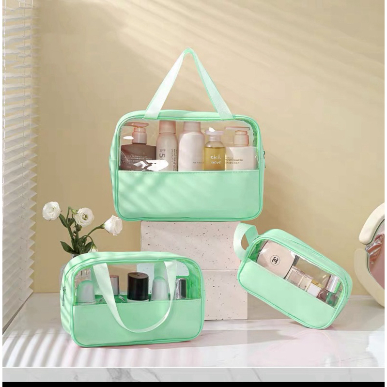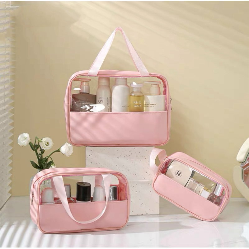 KIT 3 bolsa de higiene portátil transparente para cosméticos de viagem e produtos de higiene pessoal
