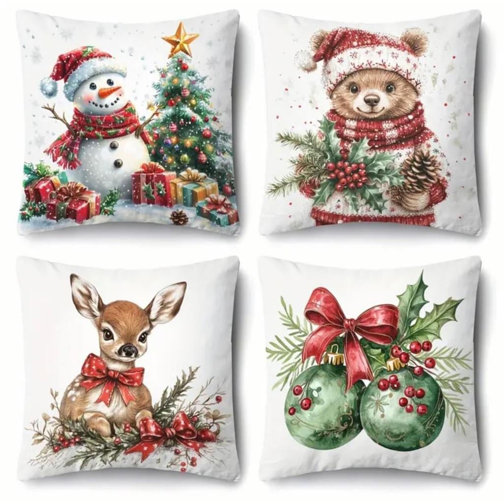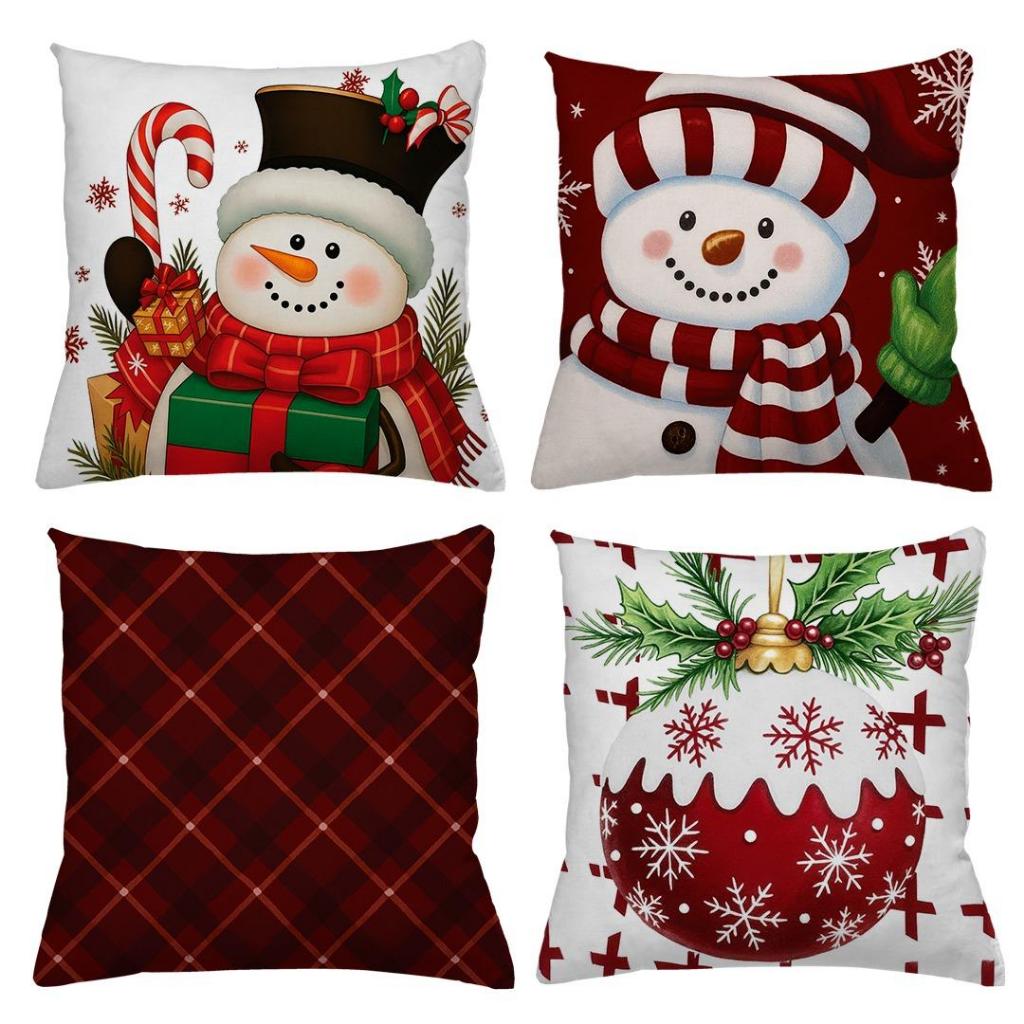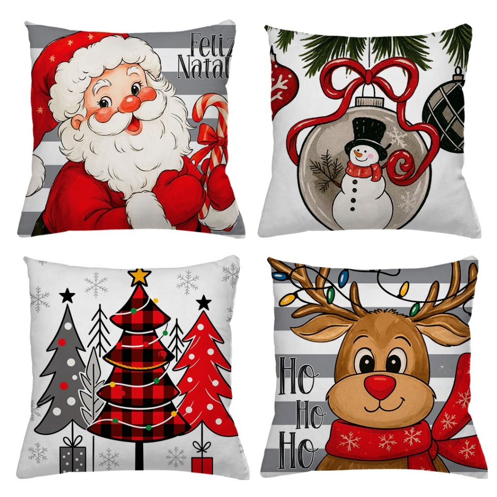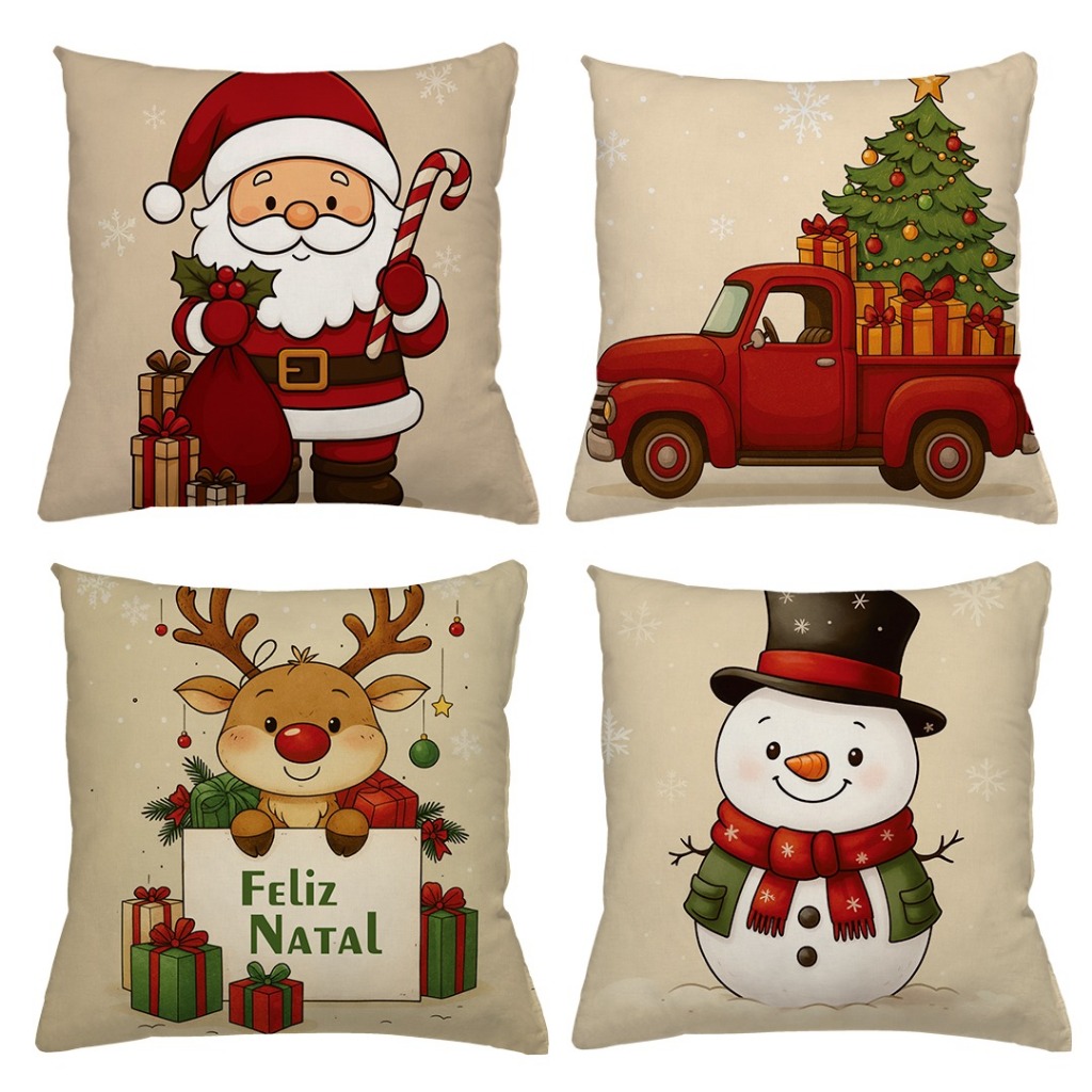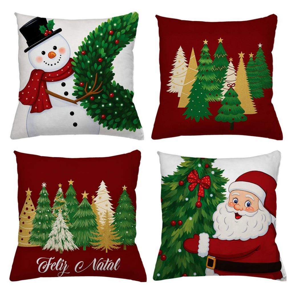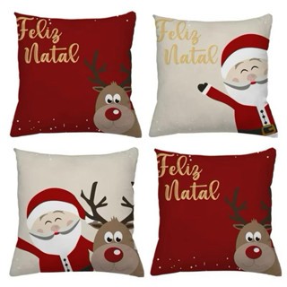 KIT 4 CAPAS DE ALMOFADAS DECORATIVAS NATAL PAPAI NOEL ,BONECO DE NEVE , RENA - TAMANHO 45X45