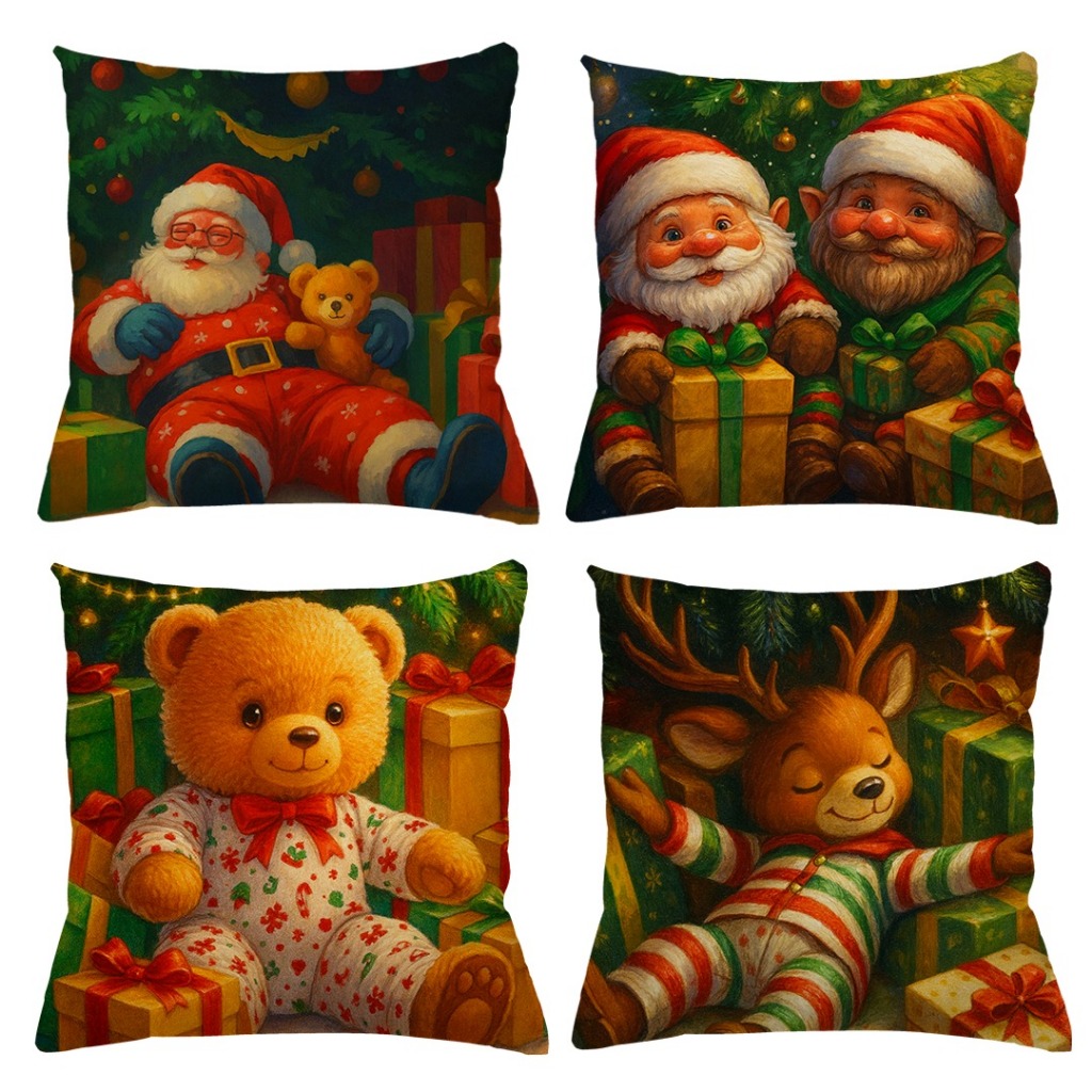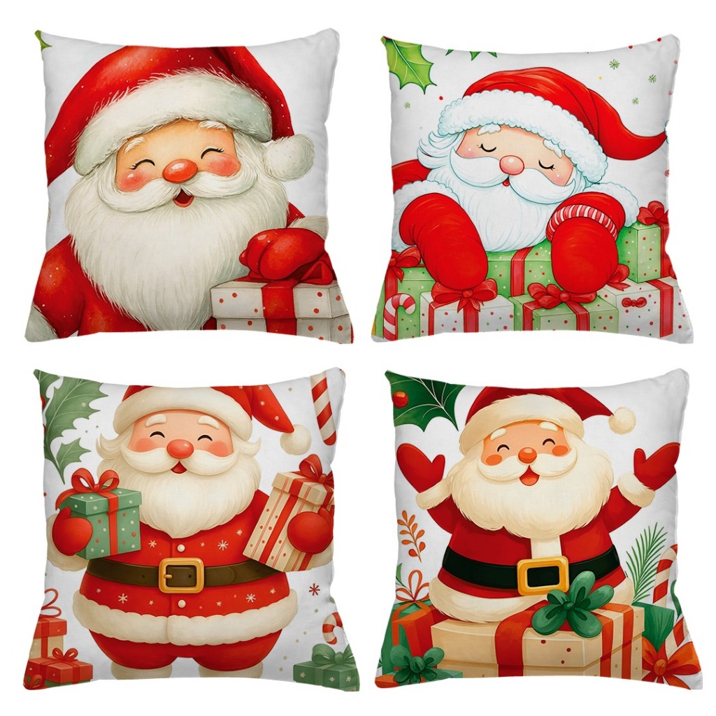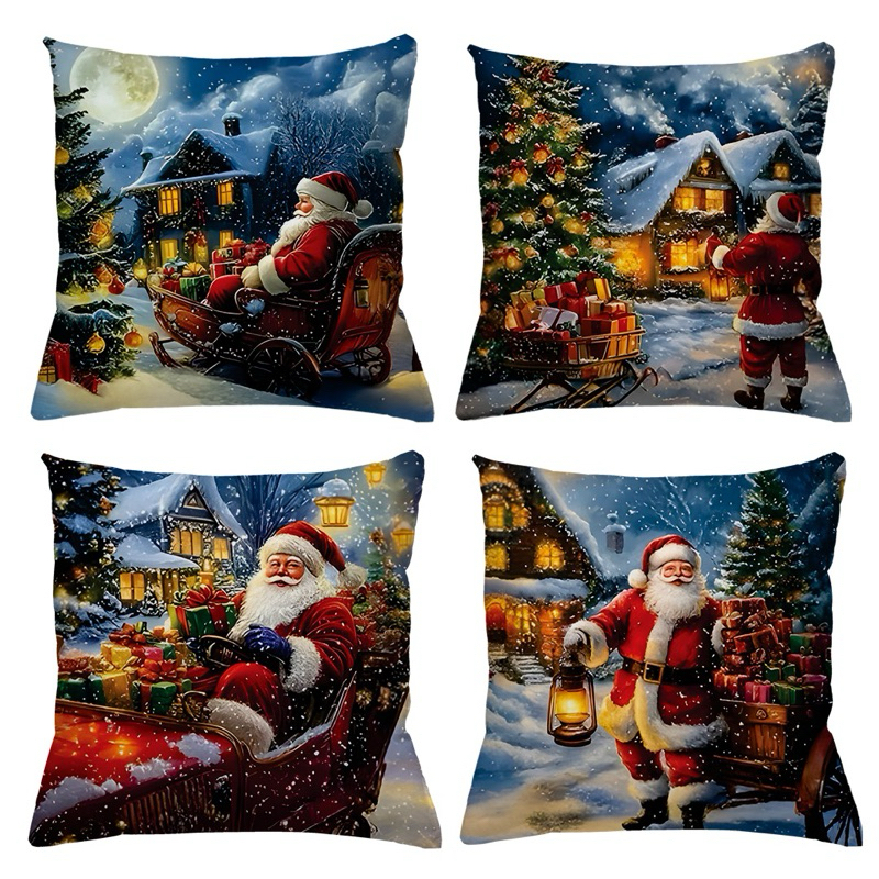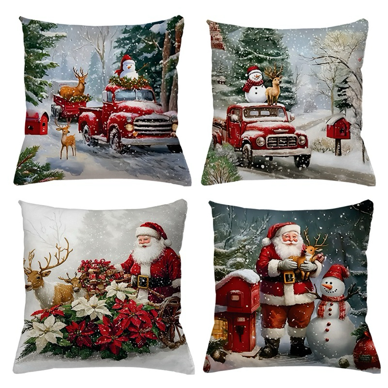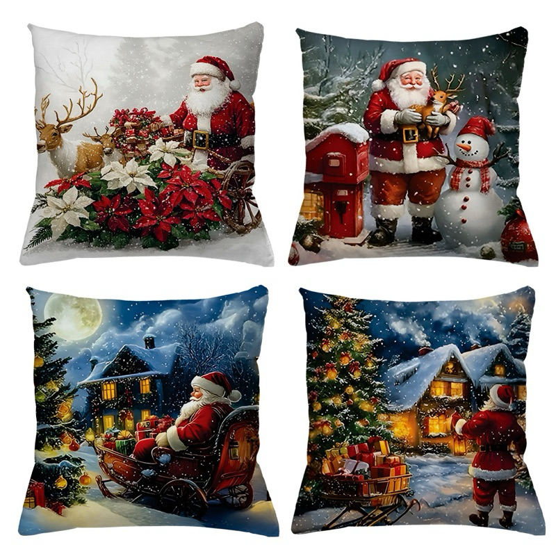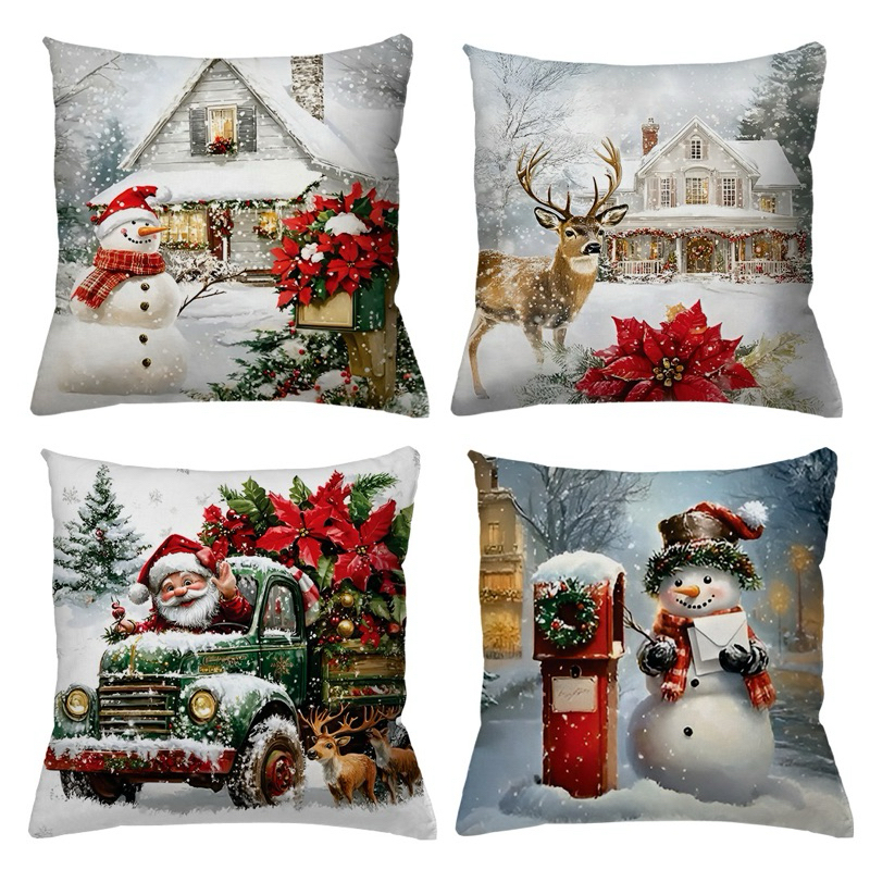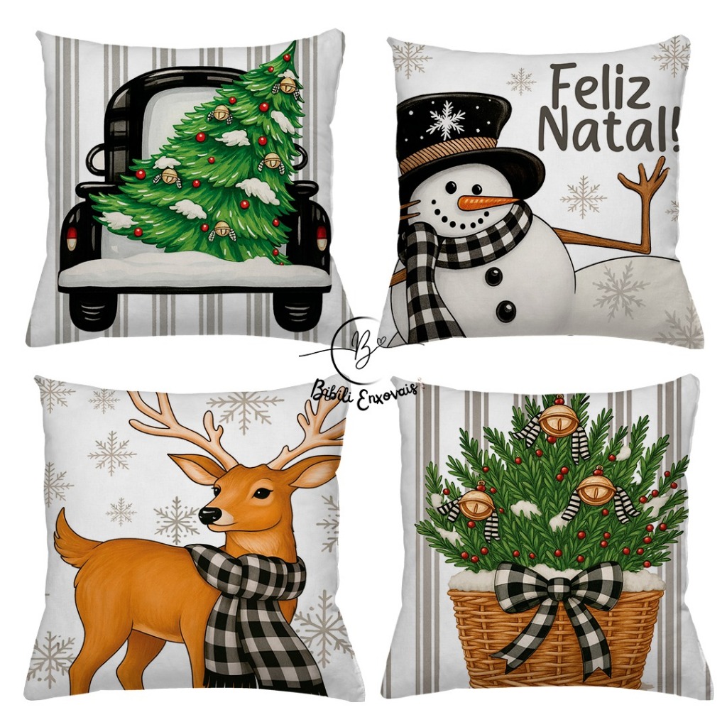 KIT 4 CAPAS DE ALMOFADAS DECORATIVAS NATAL PAPAI NOEL ,BONECO DE NEVE , RENA - TAMANHO 45X45