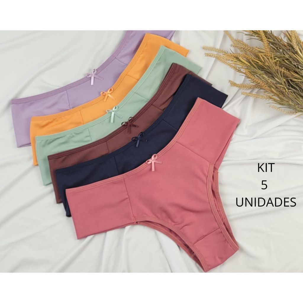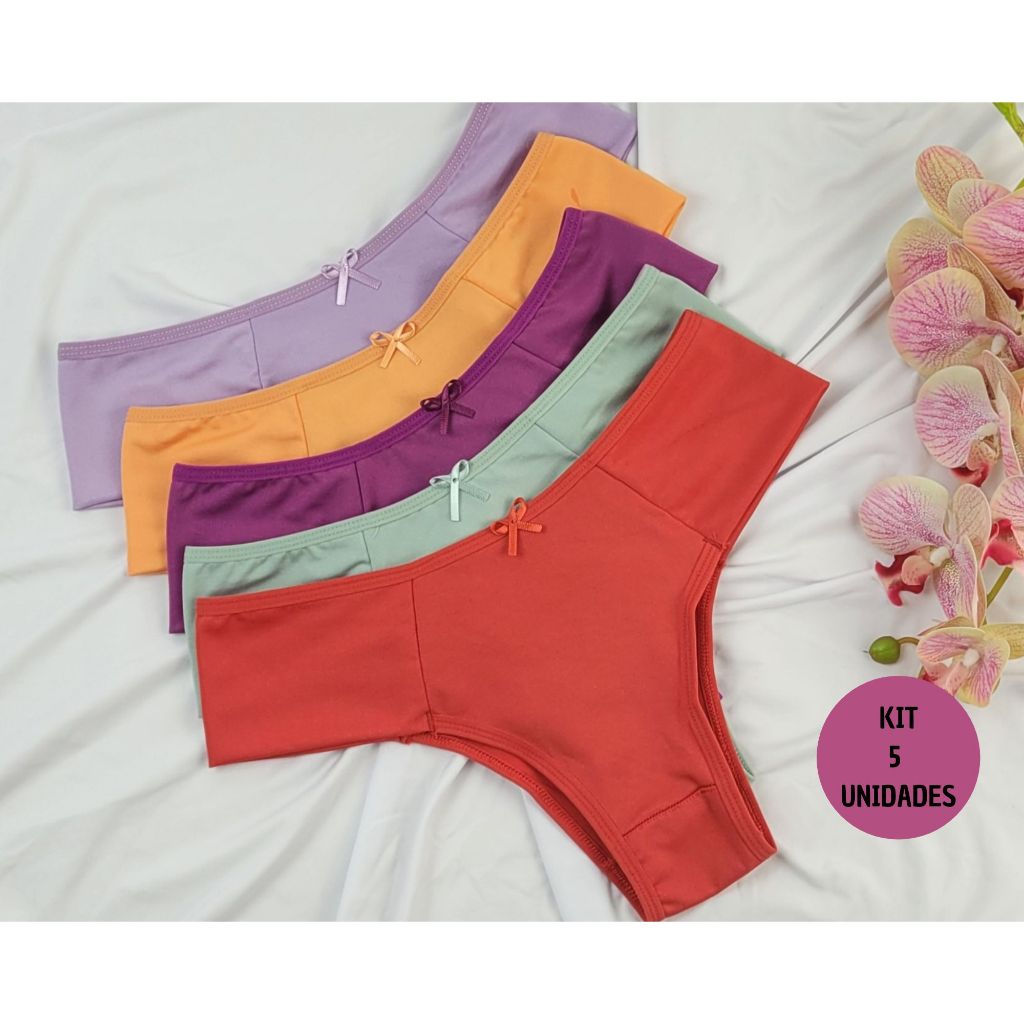 KIT 5 CALCINHAS FEMININAS PALA ALTA CONFORTO FORRO ALGODÃO