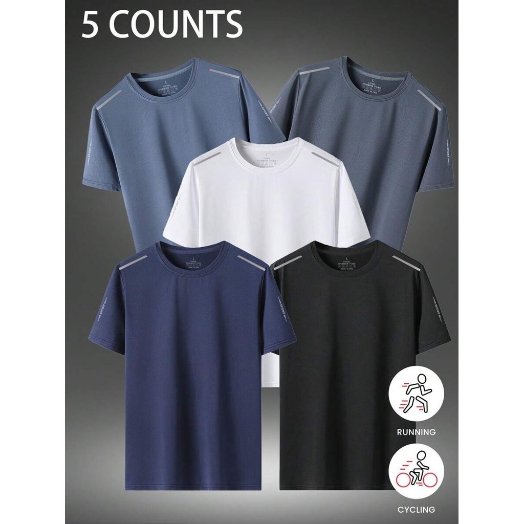 KIT 5 Camiseta Masculina para Montanhismo ao Ar Livre, Verão Camisa de Seda de Gelo Secagem Rápida Fina Versátil
