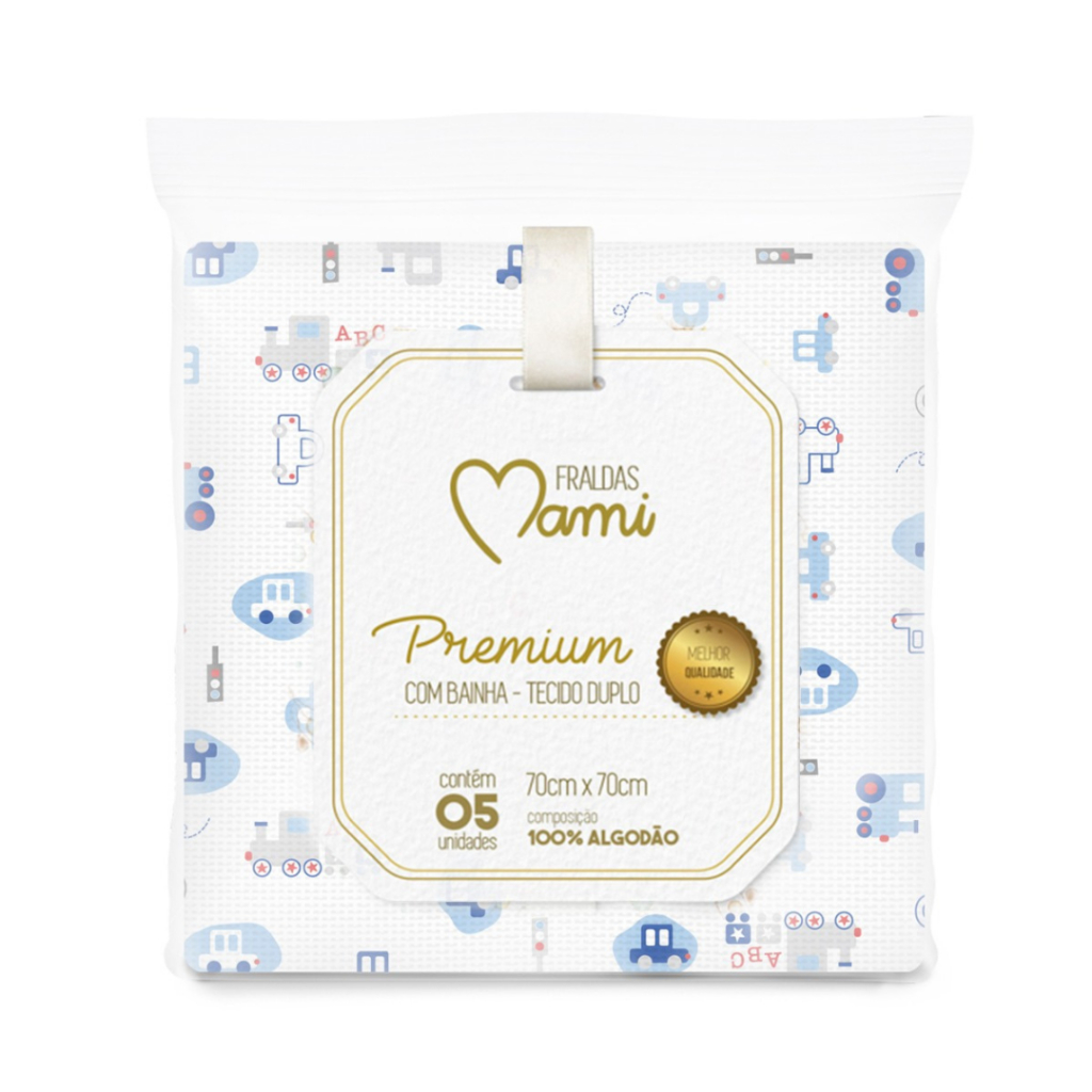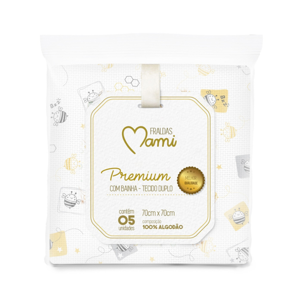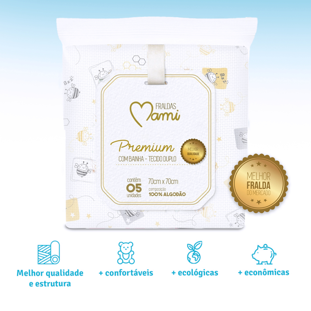 KIT 5 FRALDAS MAMI PREMIUM OU LUXO COM BAINHA 70x70cm