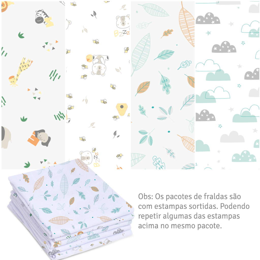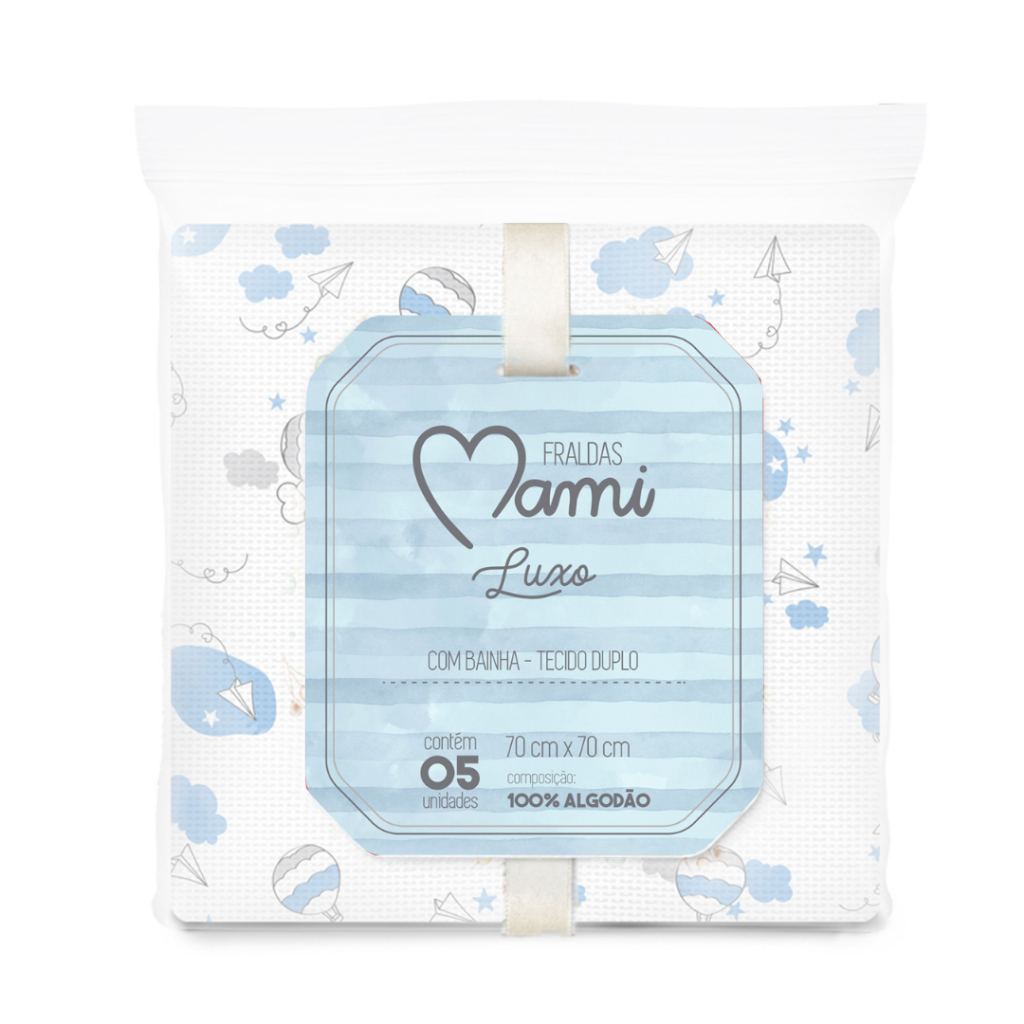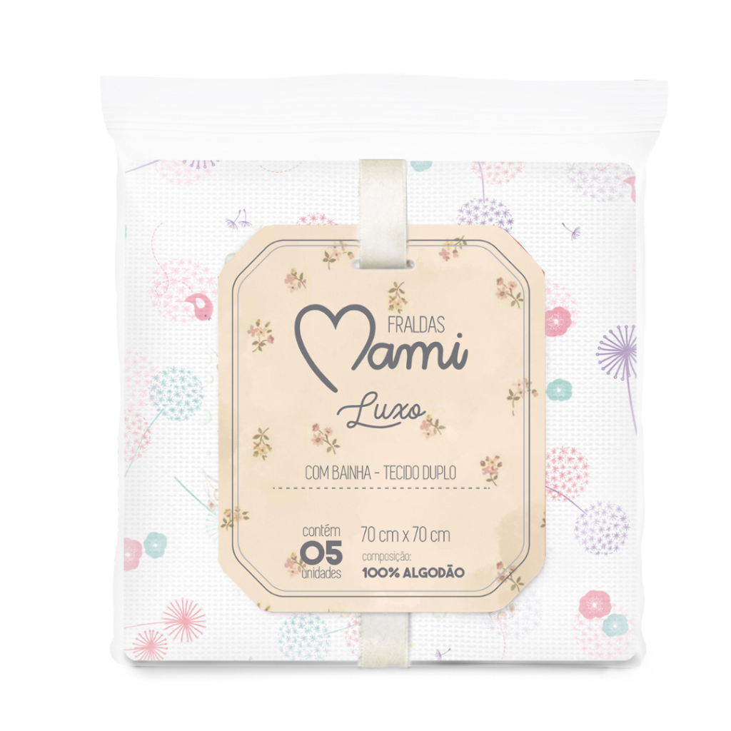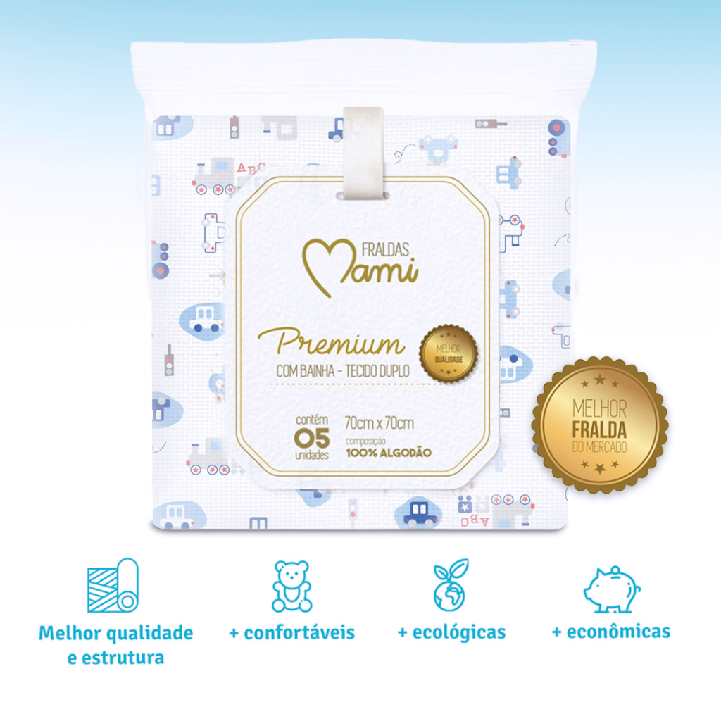 KIT 5 FRALDAS MAMI PREMIUM OU LUXO COM BAINHA 70x70cm