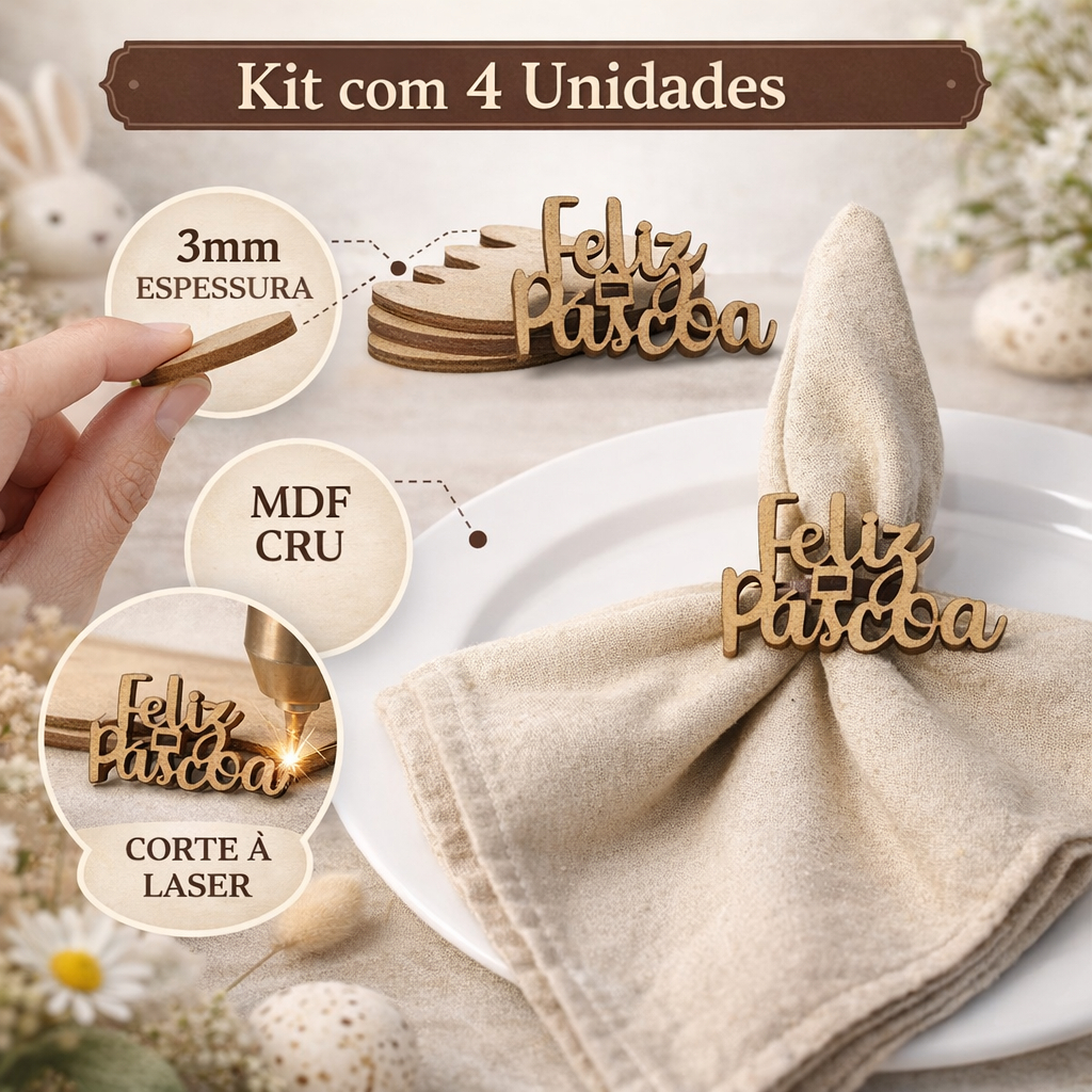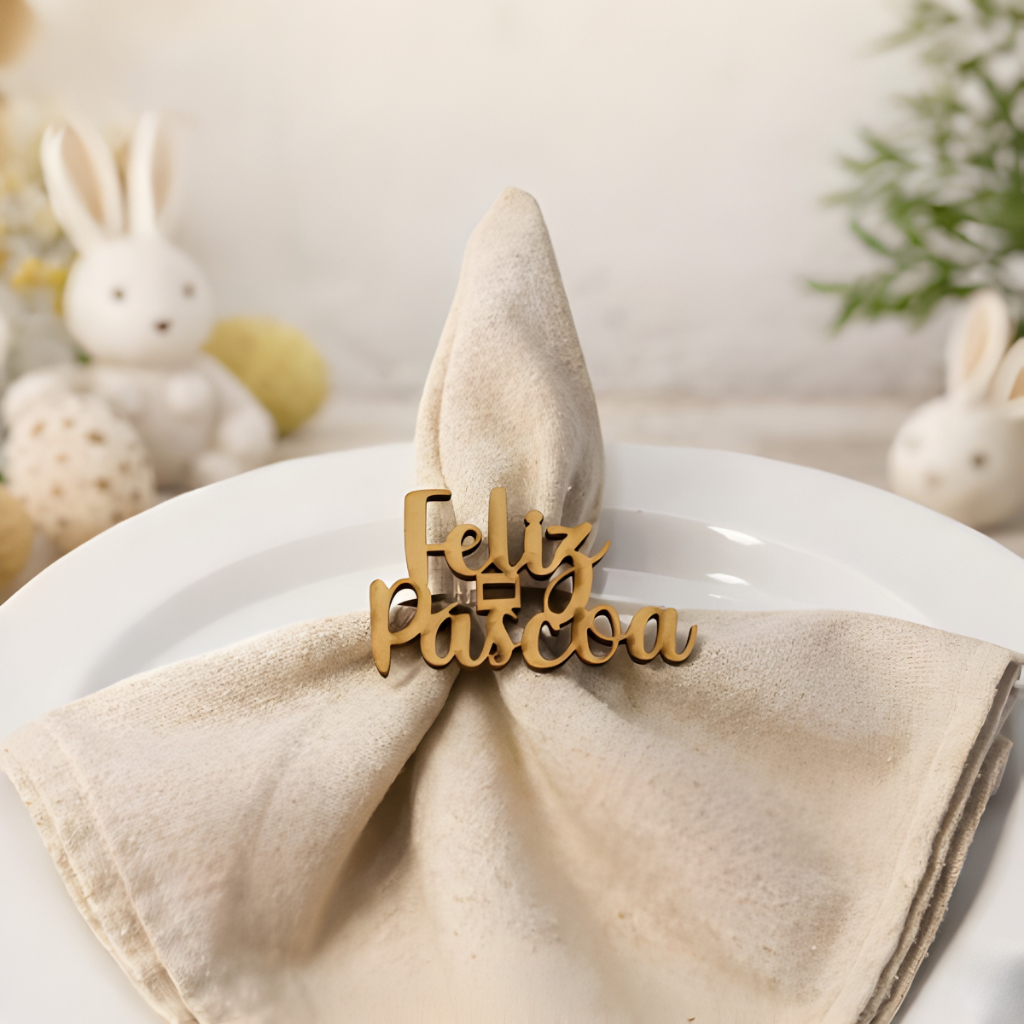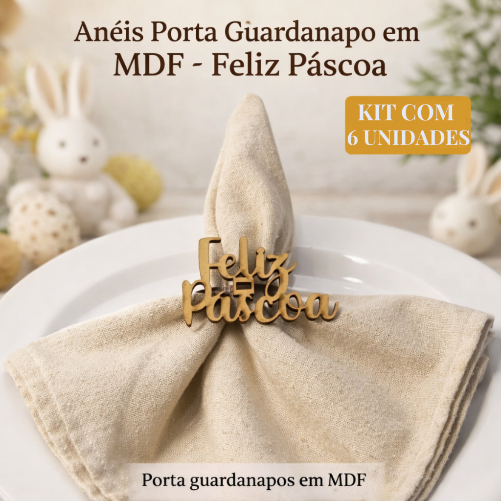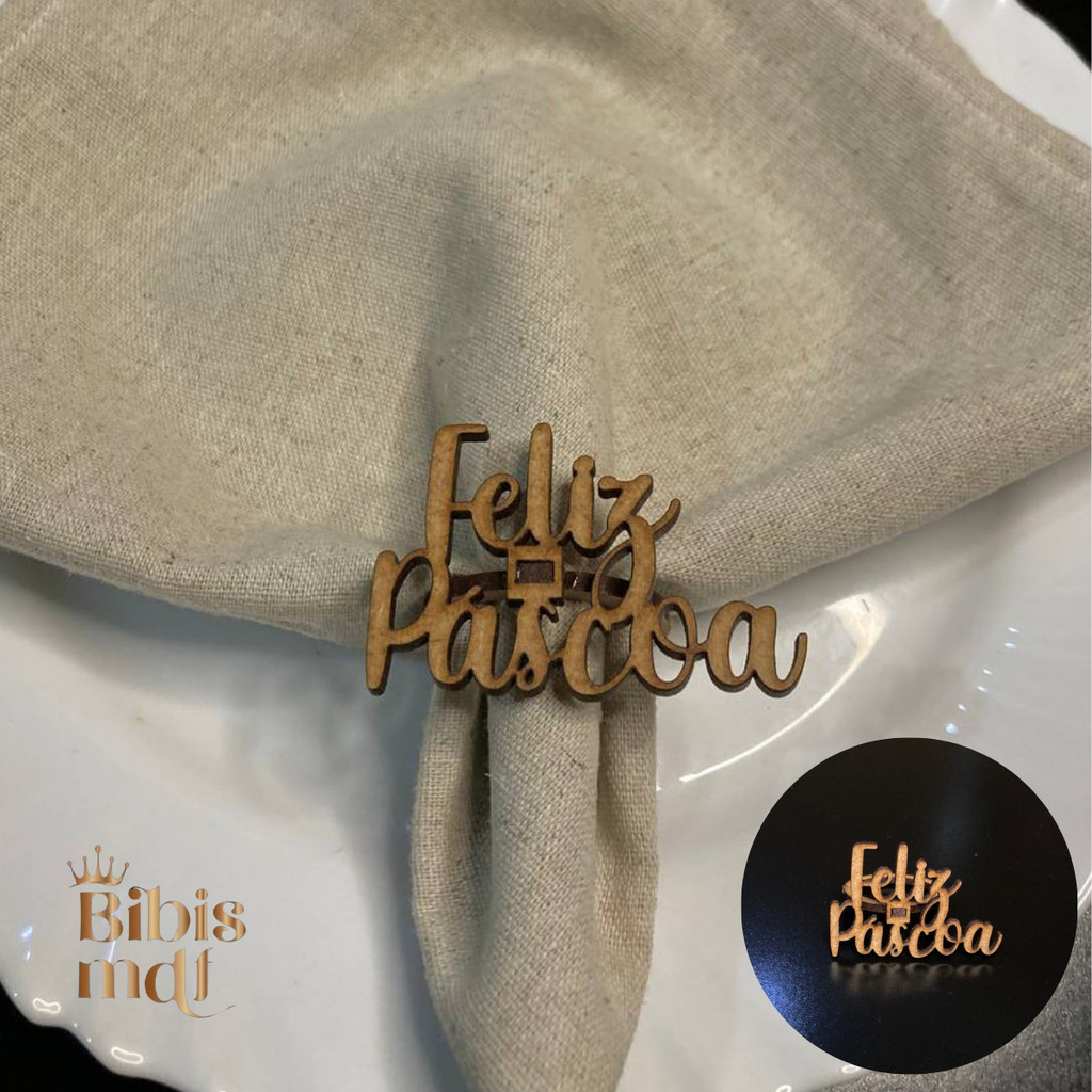 KIT 6 Anéis Porta Guardanapo em MDF Feliz Páscoa Decorativo Temático