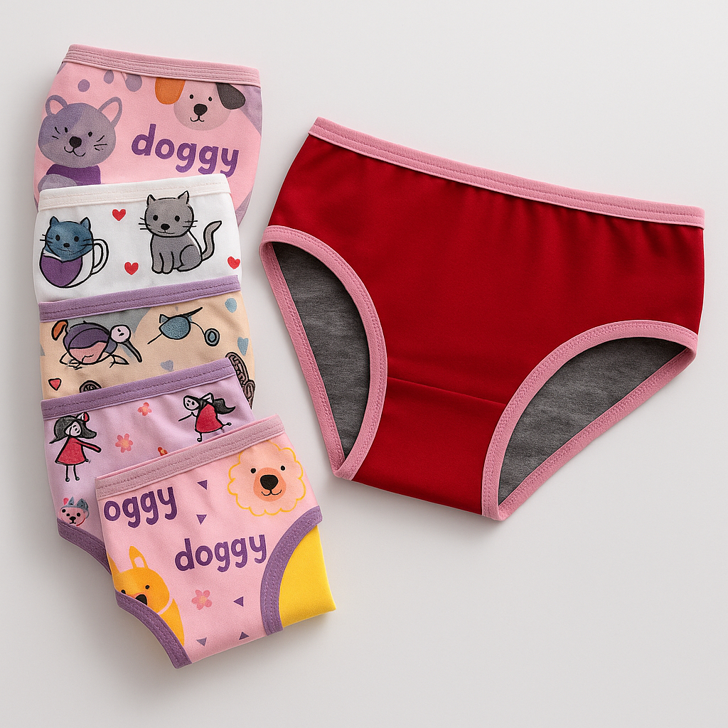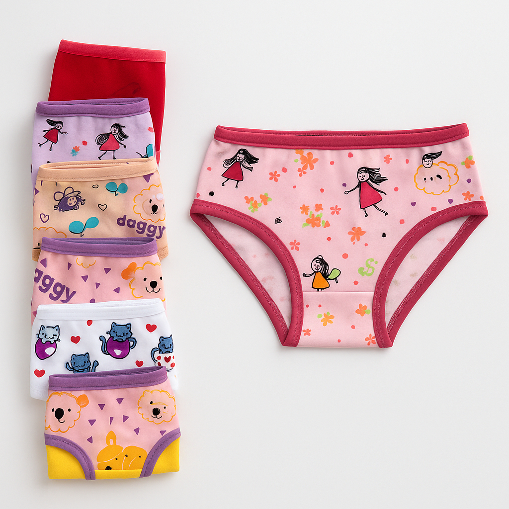 KIT 6 Calcinhas Infantis Juvenis Meninas Modelagem Tanga, Algodão Confortável e Estampas Sortidas