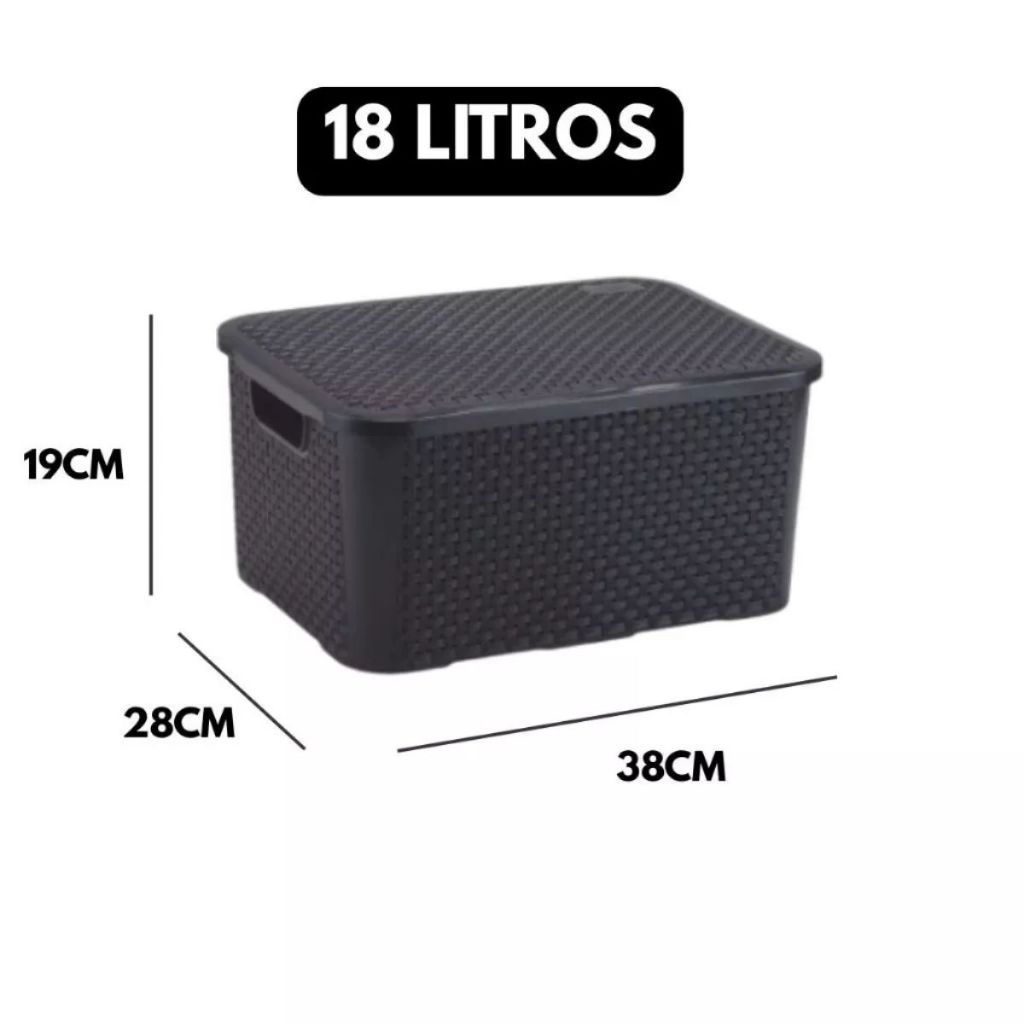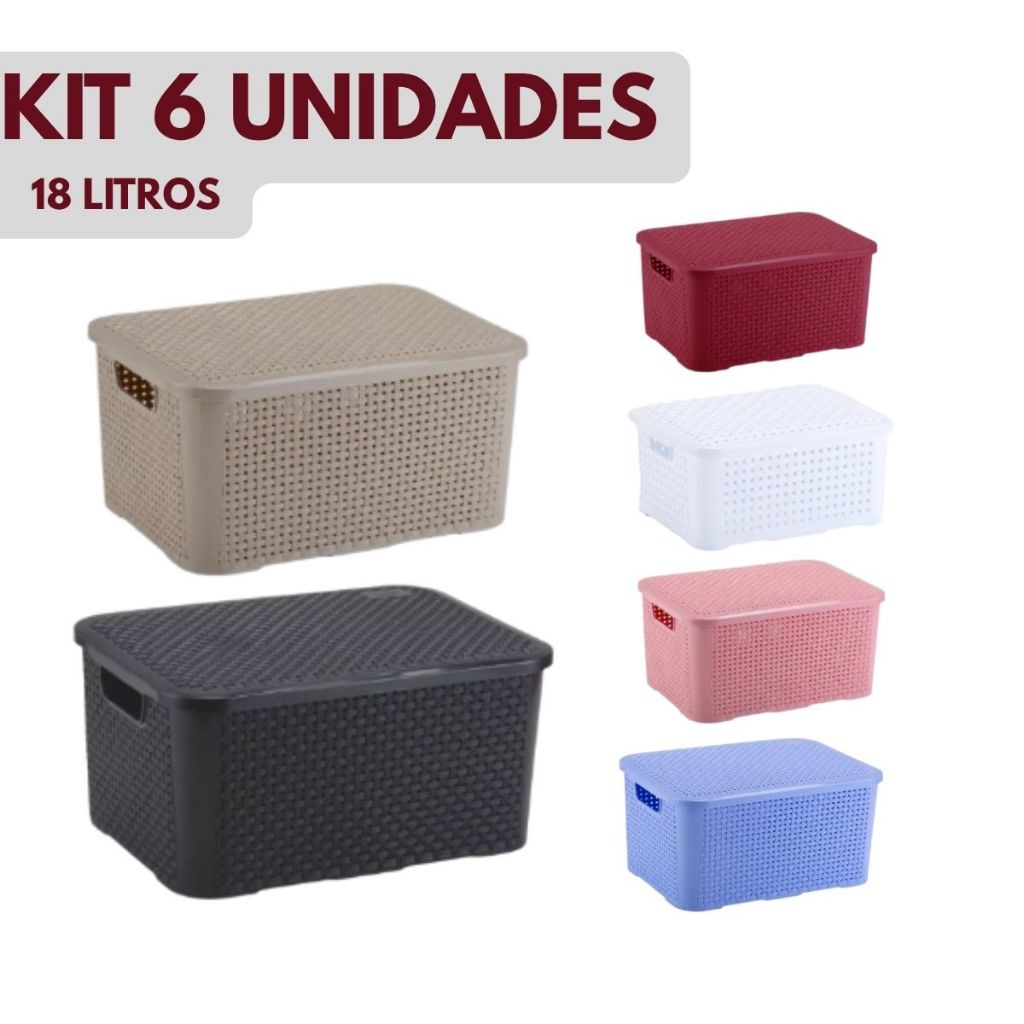 KIT 6 Cestos Organizadores com Tampa e Alça 18 Litros Rattan Multiuso Reforçado