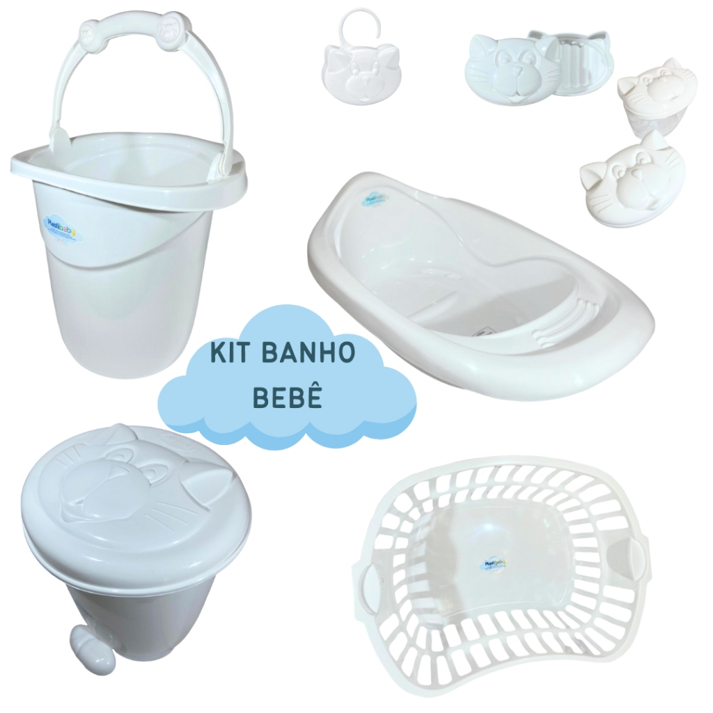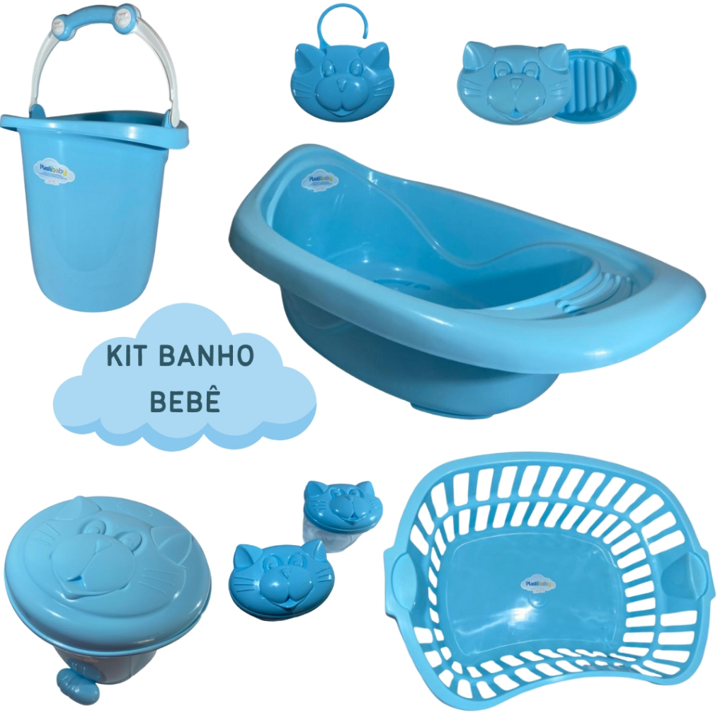 KIT BANHEIRA DE BEBE 7 ITENS 22 LITROS CESTO TELADO LIXEIRA BALDE OFURÔ PORTA ALGODÃO E SABONETEIRA