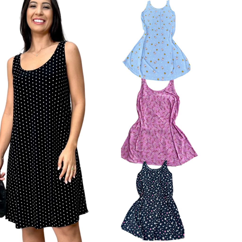 KIT CAMISOLA MALHA REGATA GRANDE SENHORA VESTIDO GESTANTE PLUS SIZE PIJAMA VERÃO CONFORTÁVEL LIGANETE ROUPA DE DORMIR