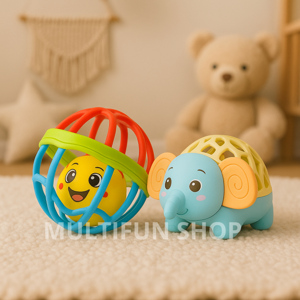 KIT CHOCALHO MORDEDOR BRINQUEDO PARA BEBÊ INTERATIVO SILICONE MACIO 8 PEÇAS – ENVIO IMEDIATO