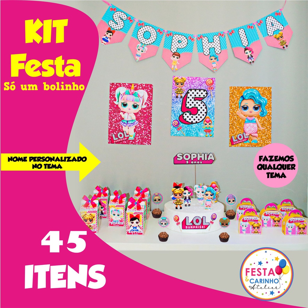 KIT Festa em Casa - 45 itens - Papelaria Personalizada - Fazemos todos os temas