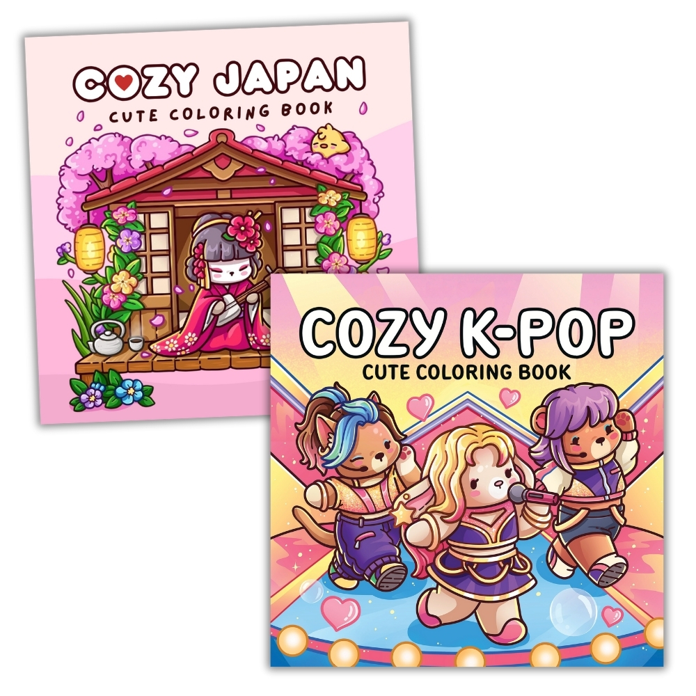 KIT Livro de colorir Cozy Japan - Livro Fofo com Personagens e Cenários Japoneses | 40 Páginas 120gr