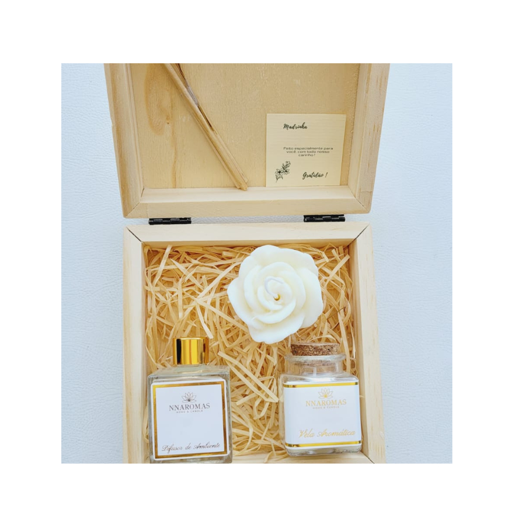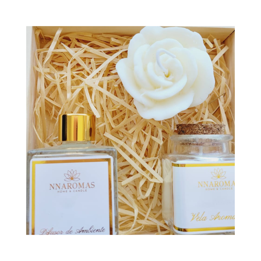 KIT MADRINHA CLASSIC | DIFUSOR DE AMBIENTE 50 ML , VELA AROMATICA 50G E VELA ROSA AROMÁTICA