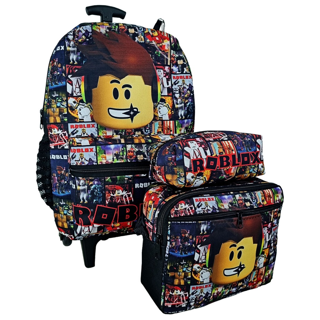 KIT MOCHILA ESCOLAR MENINO DE RODINHAS DO ROBLOX PC GAME / MOCHILA+ LANCHEIRA+ ESTOJO